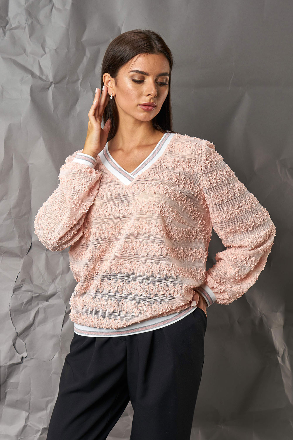 Молодежное Платье полуприлегающего силуэта с фигурной застежкой по горловине на потайную кнопку.Декоративная булавка входит в комплект. В боковом шве молния. Состав: полиэстер 85%, спандекс 15%. Без подкладки.Длина изделия по спинке 121 см,длина рукава 61 см. Подойдет на рост 164-170 см