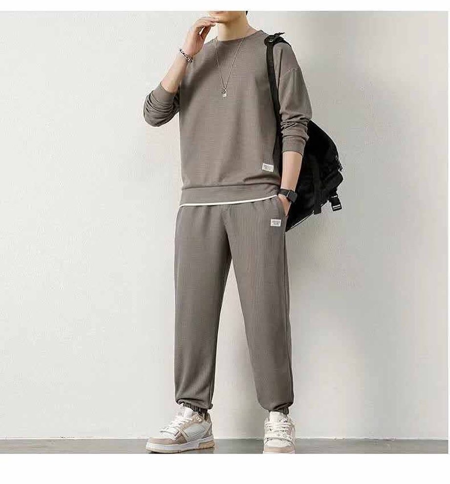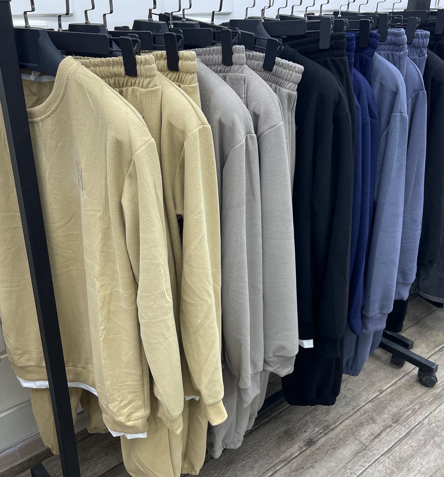 Мужская спортивная двойка. 5 расцветок Серый, синий, черный, кофе, бежевый. Размер M-3XL. Ткань вафли. Производство Гуанчжоу.