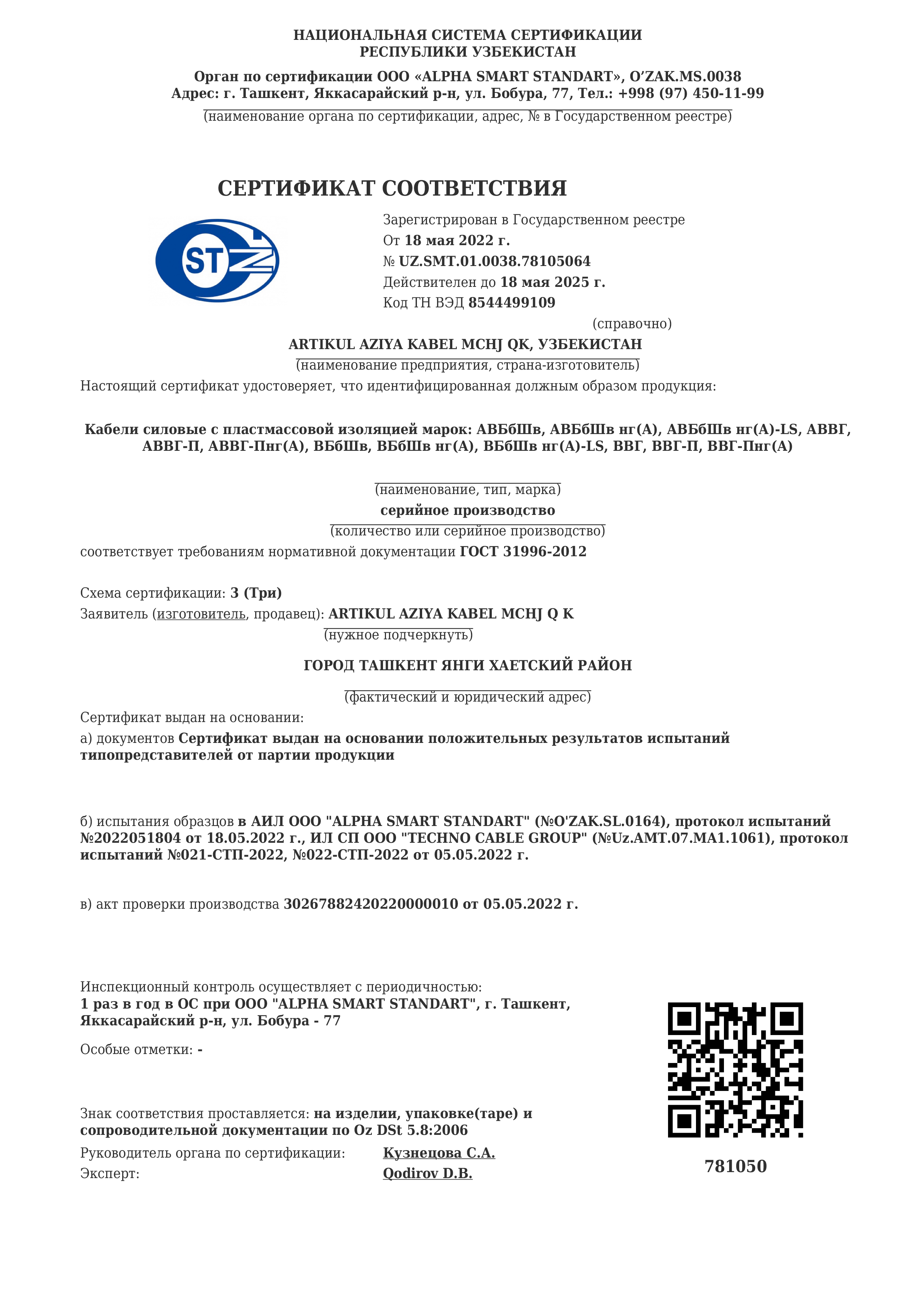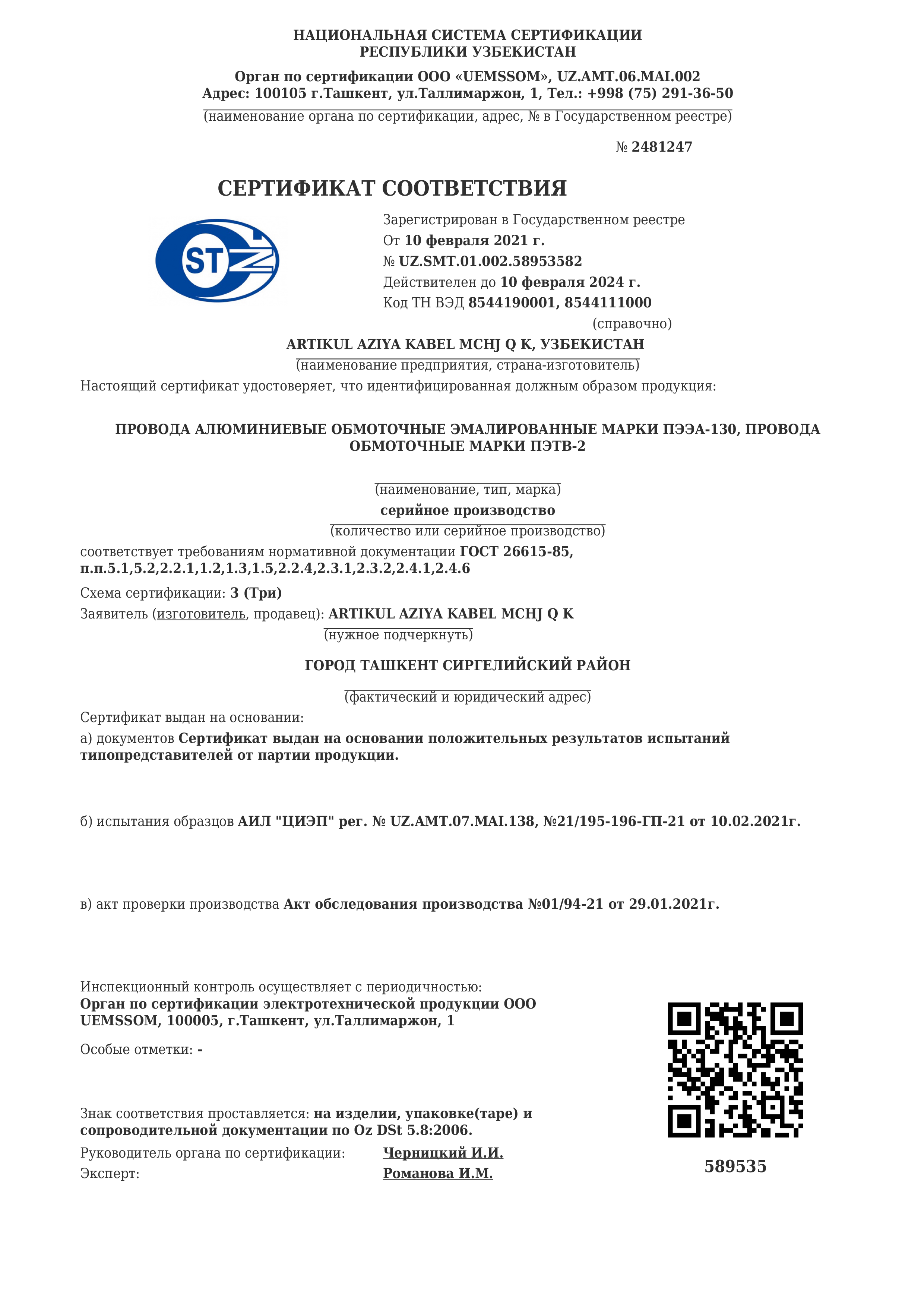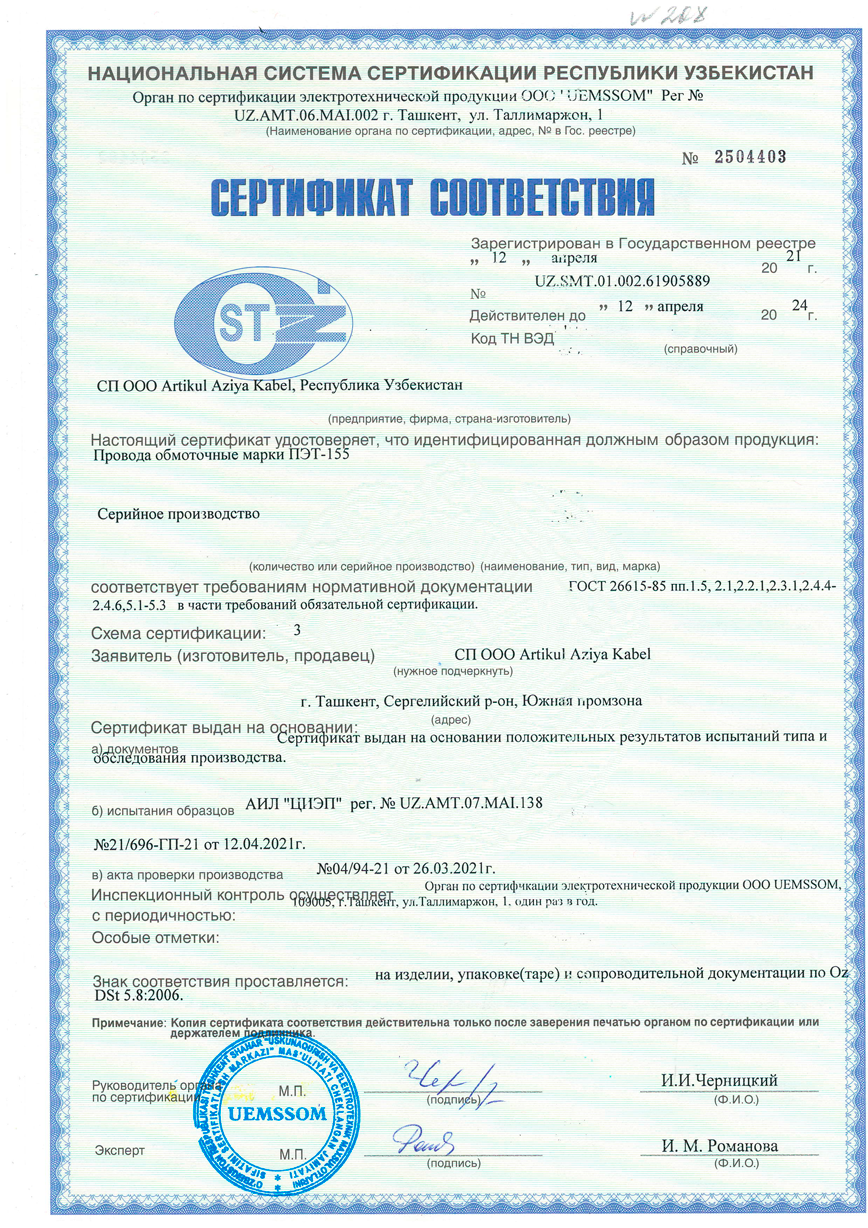 | Провода, кабели и сборки | Узбекистан, Tashkent, Yangihayot, south industrial zone |