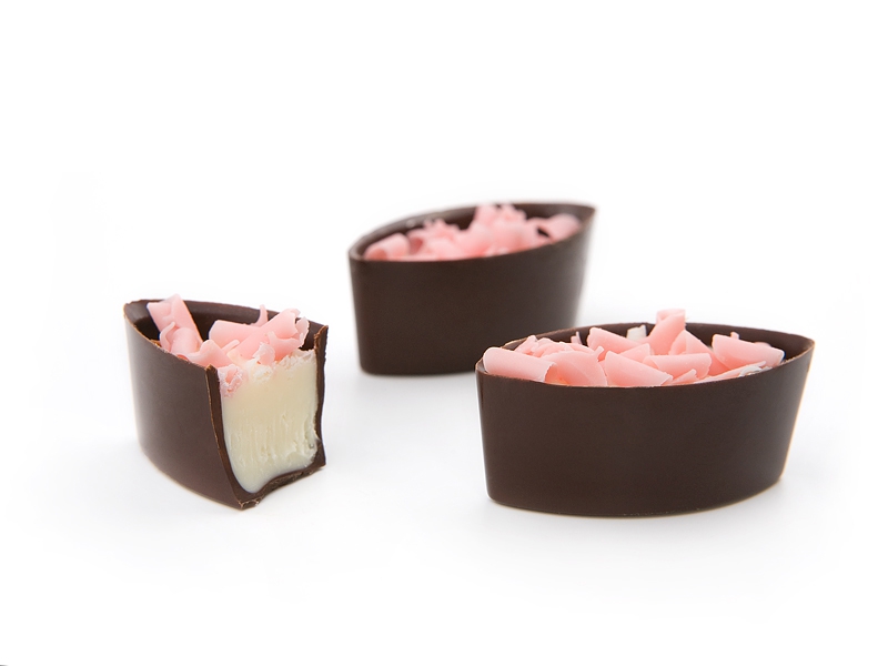 Темный шоколад 52,5 %, розовый шоколад, начинка со вкусом барбарисаПищевая ценность на 100г продукта: белки- 5,0 г жиры - 39,1 г углеводы - 51,5 гЭнергетическая ценность: 577 ккал /2416 кДжХранить при температуре воздуха (18 ± 3)`C и относительной влажности воздуха не более 75%.