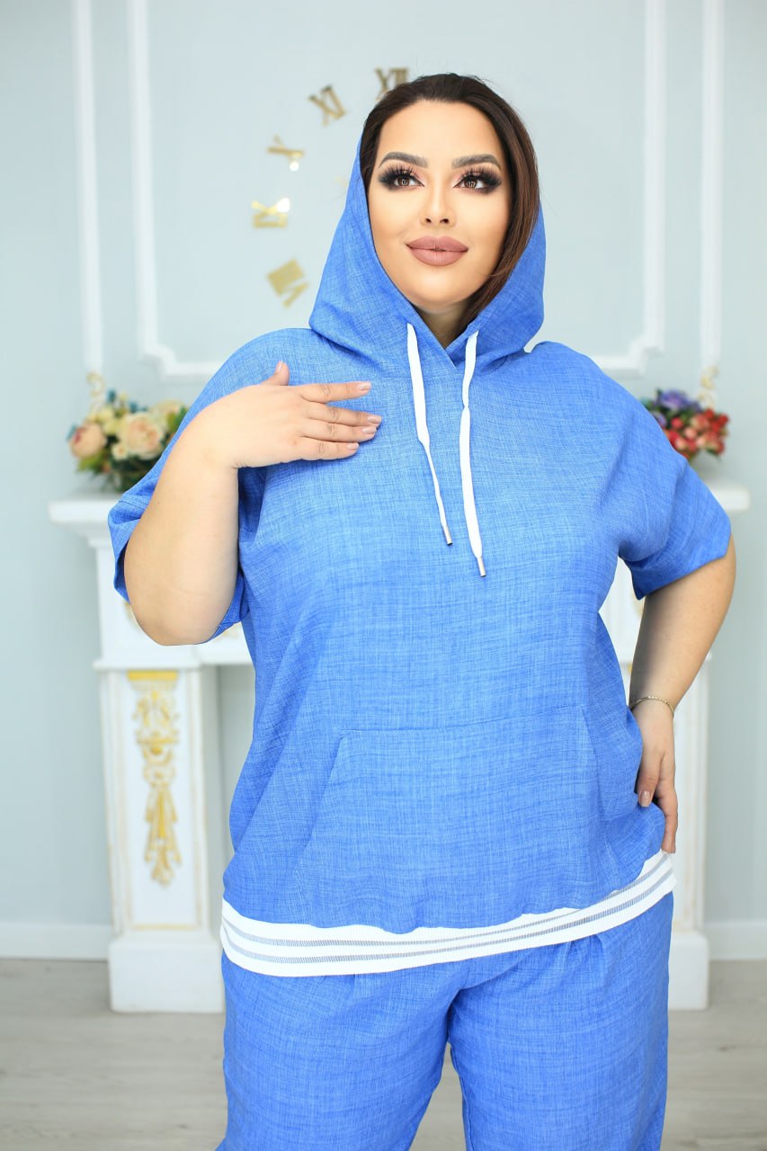Спортивный костюм. Размерный ряд: 48-64. Цвет: джинсовый меланж.