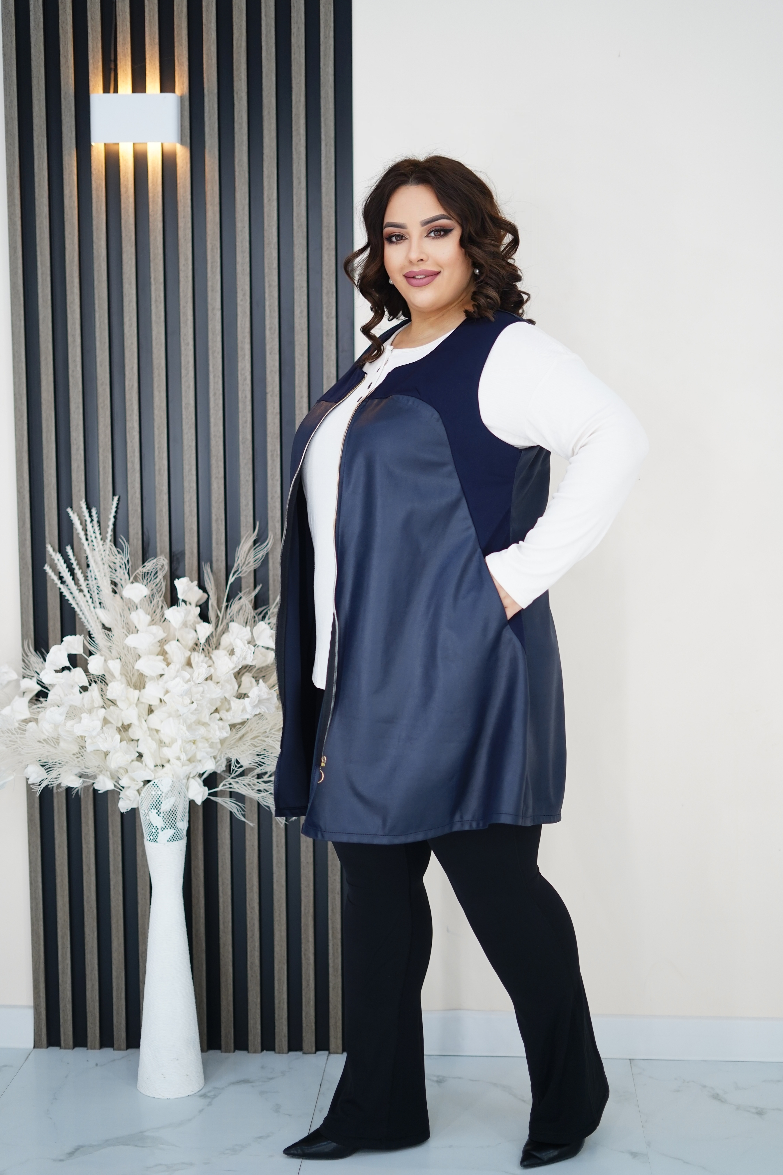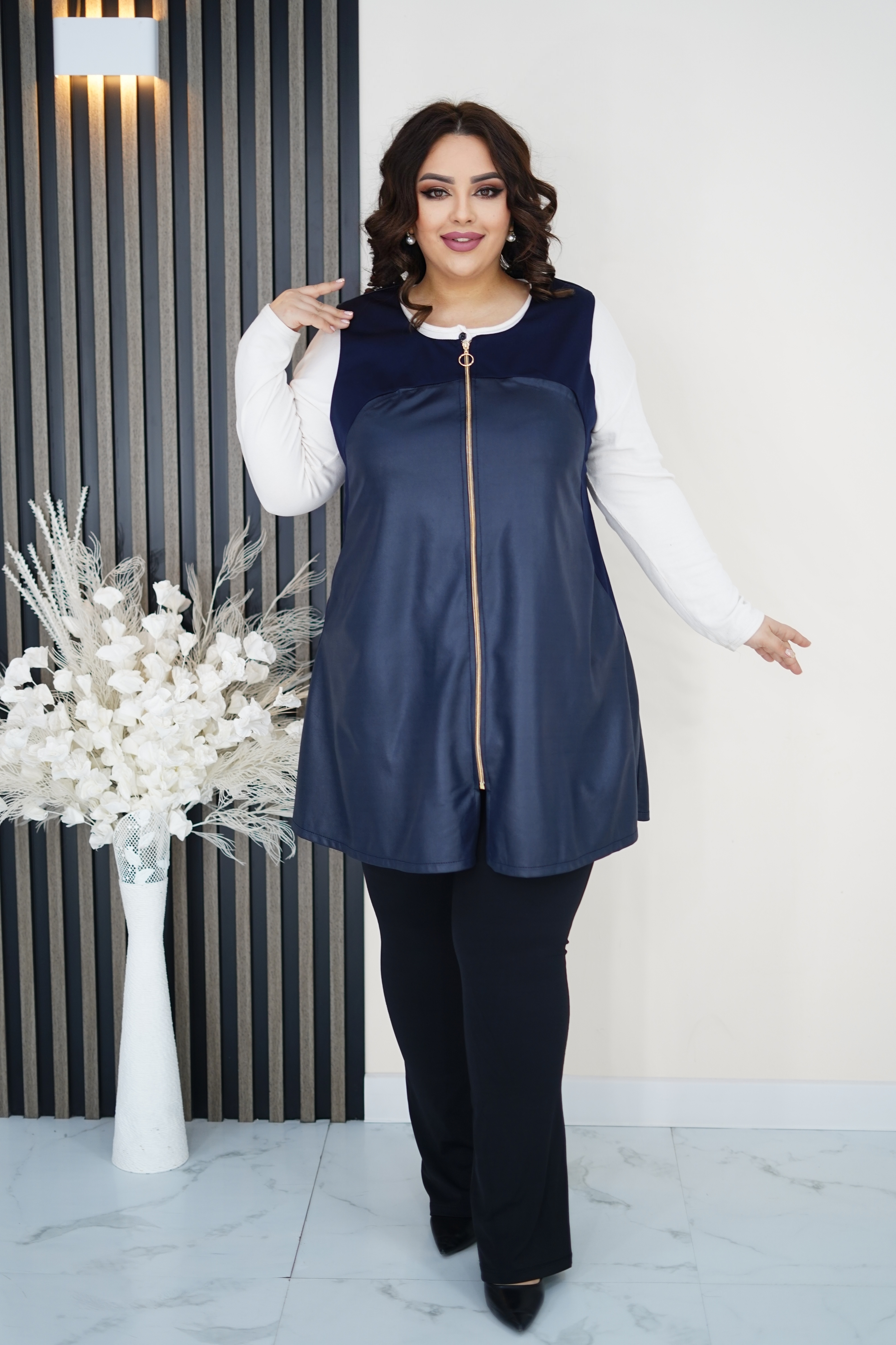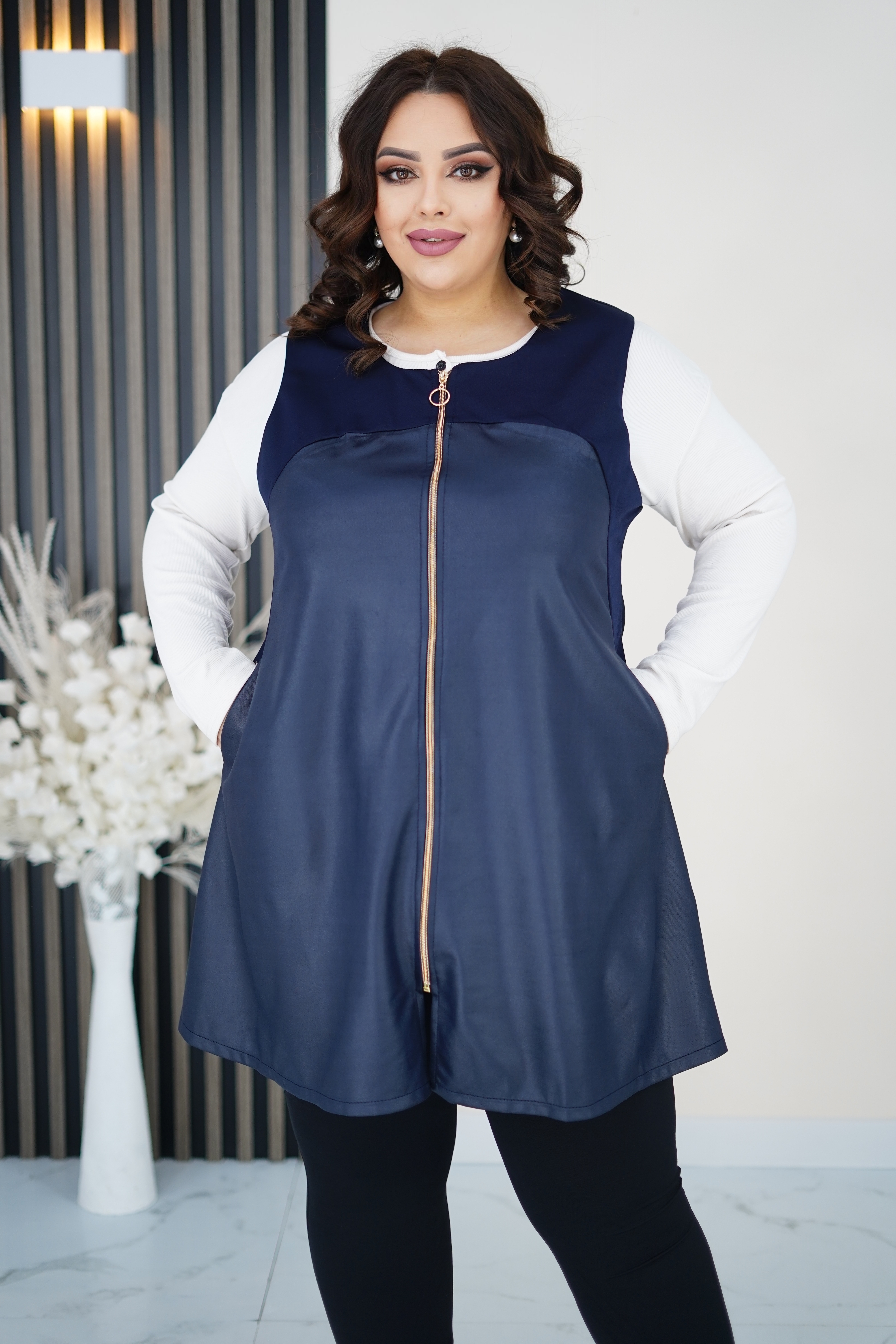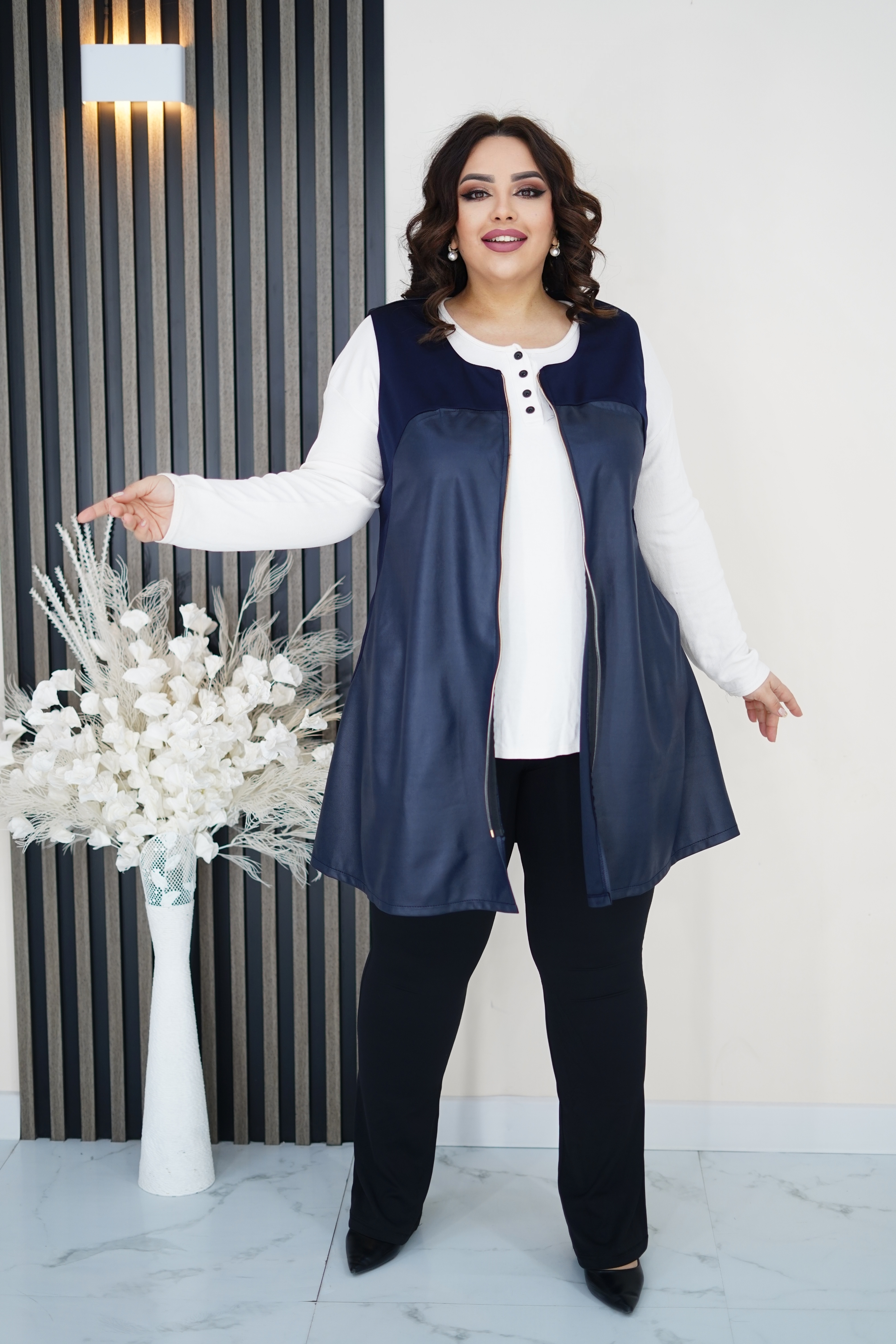 ЖИЛЕТ ИЗ ЭКОКОЖИ - ТРЕНДОВАЯ ВЕЩЬ ДЛЯ ВАШИХ СМЕЛЫХ АУТФИТОВ, В НЕМ ВЫ ВЫ ЧУВЧСТВУЕТЕ СЕБЯ ОЧЕНЬ КОМФОРТНО И УДОБНО, ЖИЛЕТ МОЖНО КОМБИНИРОВАТЬ С ЛЮБЫМИ ВЕЩАМИ - ОТ ТОНКИХ ШИФОНОВЫХ БЛУЗ ДО ВОДОЛАЗОК ИЗ ТРИКОТЖА, МОДЕЛЬ ВИЗУАЛЬНО СТРОЙНИТ, ТАКЖЕ ЭТОТ МАТЕРИАЛ НЕ ТРЕБУЕТ ОСОБОГО УХОДА: АЛЬТЕРНАТИВОЙ СТИРКЕ СТАНЕТ ПРОТИРАНИЕ МЯГКОЙ ВЛАЖНОЙ ТКАНЬЮ. ЦВЕТ: ТЕМНО-СИНИЙ. РАЗМЕР: 54-64.
