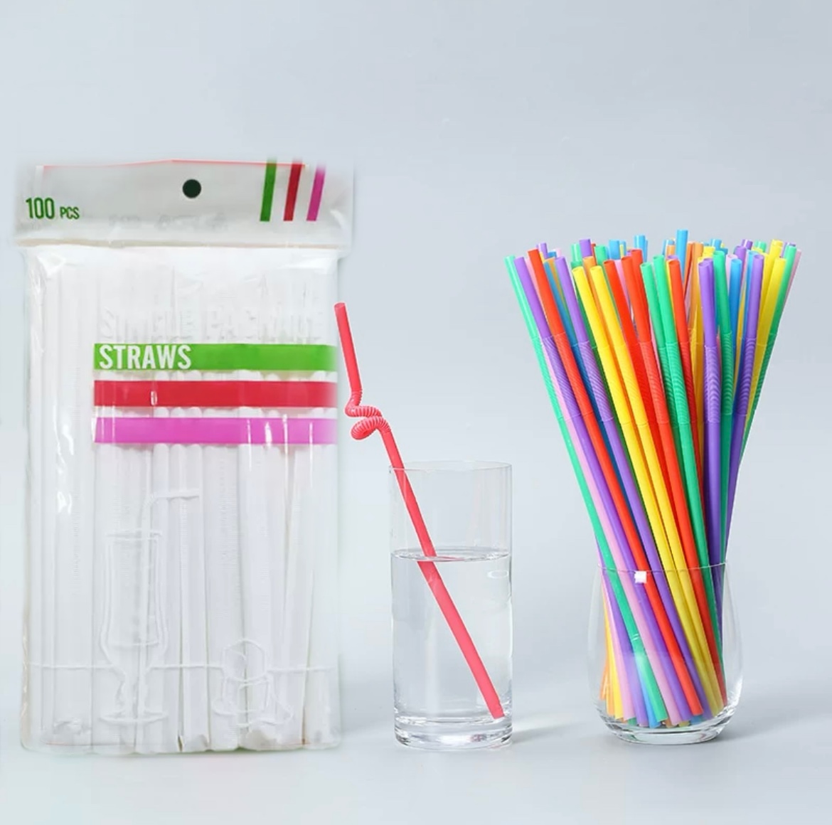 Разноцветные трубочки одноразовые пластиковые с изгибом. Предназначены для сервировки молочных коктейлей и других напитков. Размер трубочек 6мм* 260 мм. Трубочки для коктейля имеют разноцветную окраску.