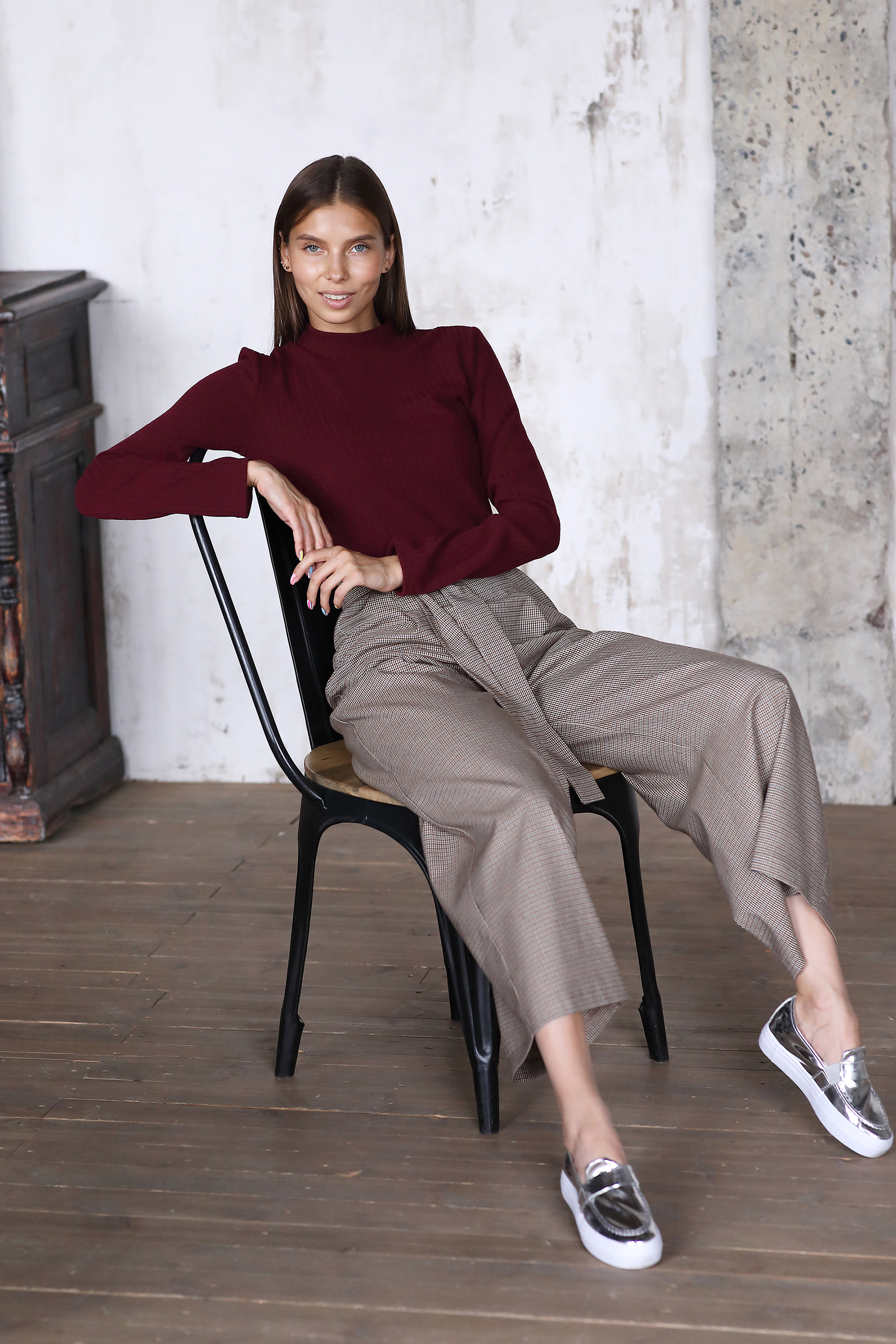 Состав ткани: 20% вискоза, 75% полиэстер, 5% эластан Ткань: Костюмная Цвет: Мультиколор Длина изделия: по внутреннему шву: 65 см, по боковому шву: 100 см* Комплектация: Брюки, пояс Размер на фотомодели: S Рост фотомодели: 173 см Параметры фотомодели: 84/63/96 см Невероятно удобные брюки из мягкой костюмной ткани с модным принтом клетка. Укороченная модель с широкими штанинами и со шлевками на талии. Застежка сбоку на потайную молнию. Благодаря своей универсальности брюки замечательно впишутся в любой повседневный гардероб. Отлично сочетаются как с обувью на плоской подошве, так и обувью на каблуке. Можно носить с блузами, свитшотами, футболками, рубашками. * Числовой параметр соответствует размеру XS (удлинение по размерной сетке на 0,5 см)