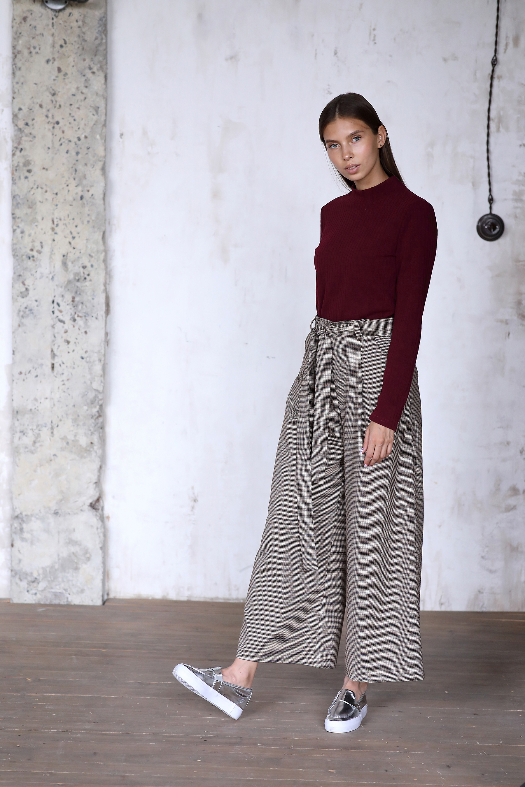 Брюки широкие с принтом клетка - 43942
