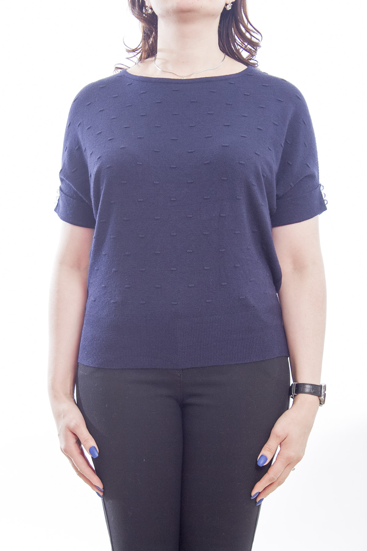 женская кофта приталенного кроя. изделие имеет короткие рукава. размеры 44-48