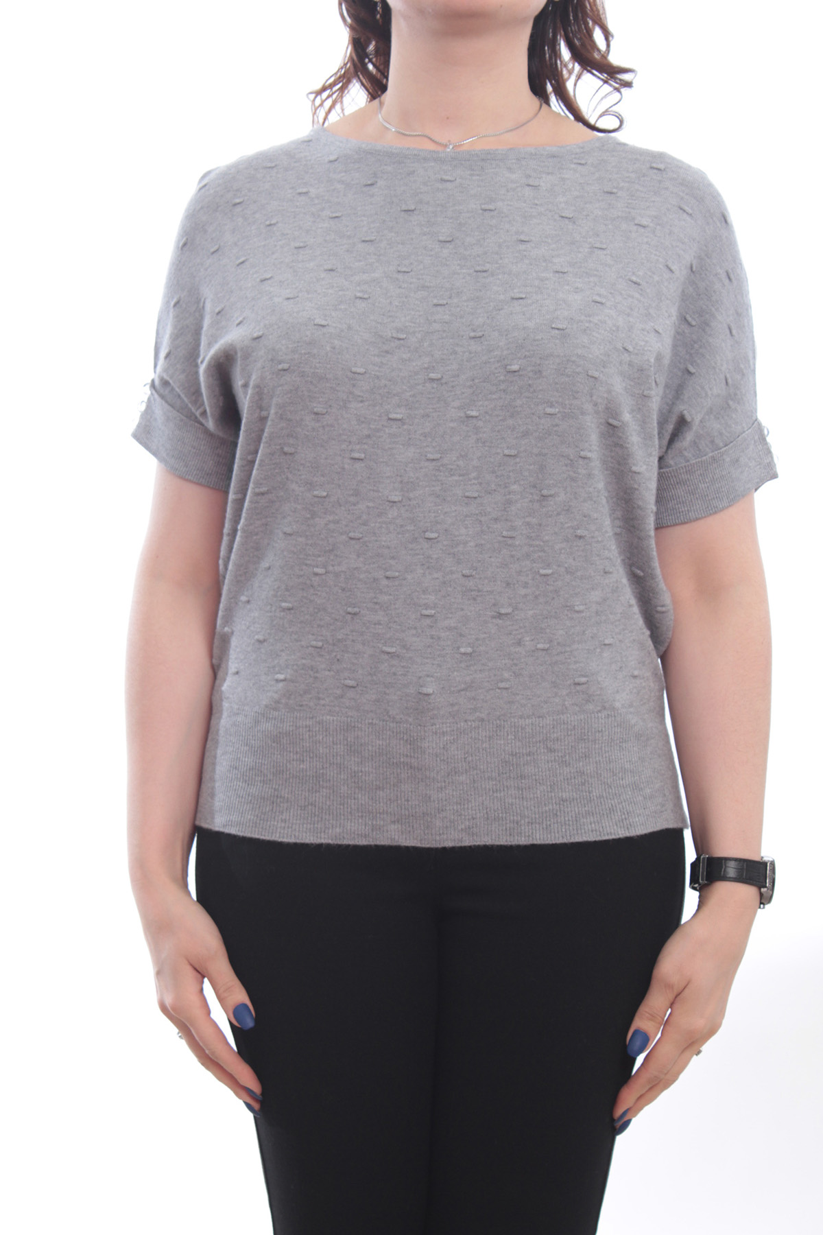 женская кофта приталенного кроя. изделие имеет короткие рукава. размеры 44-48