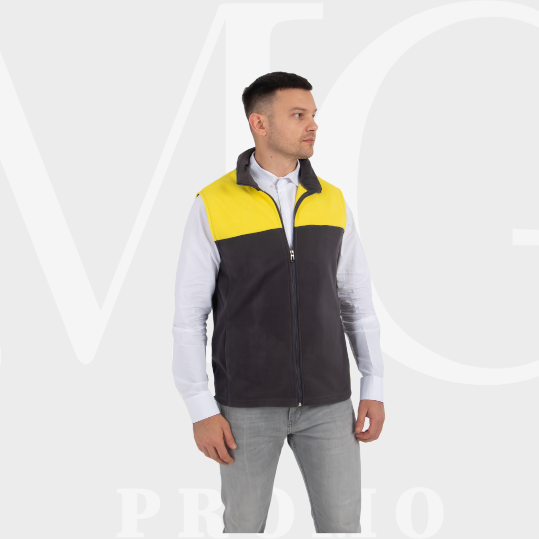 Жилетка для офисных сотрудников и медработников. Имеется: центральная молния, два кармана для рук. Предлагаем нанесение следующих видов: сублимация, компьютерная вышивка, шелкография, ДТФ. Ткань: флис двусторонний