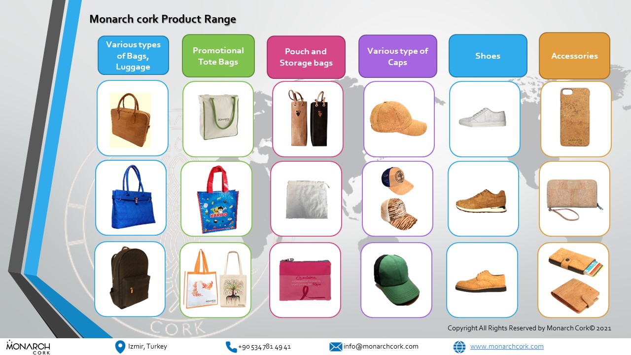 Monarch Cork была основана в 2017 году. Мы являемся производителем модных товаров, разработанных из экологически чистой пробковой ткани высокого качества, переработанной ткани и экологически чистых материалов, базирующихся в Турции. В наш ассортимент входят модные товары для женщин и мужчин, такие как:
