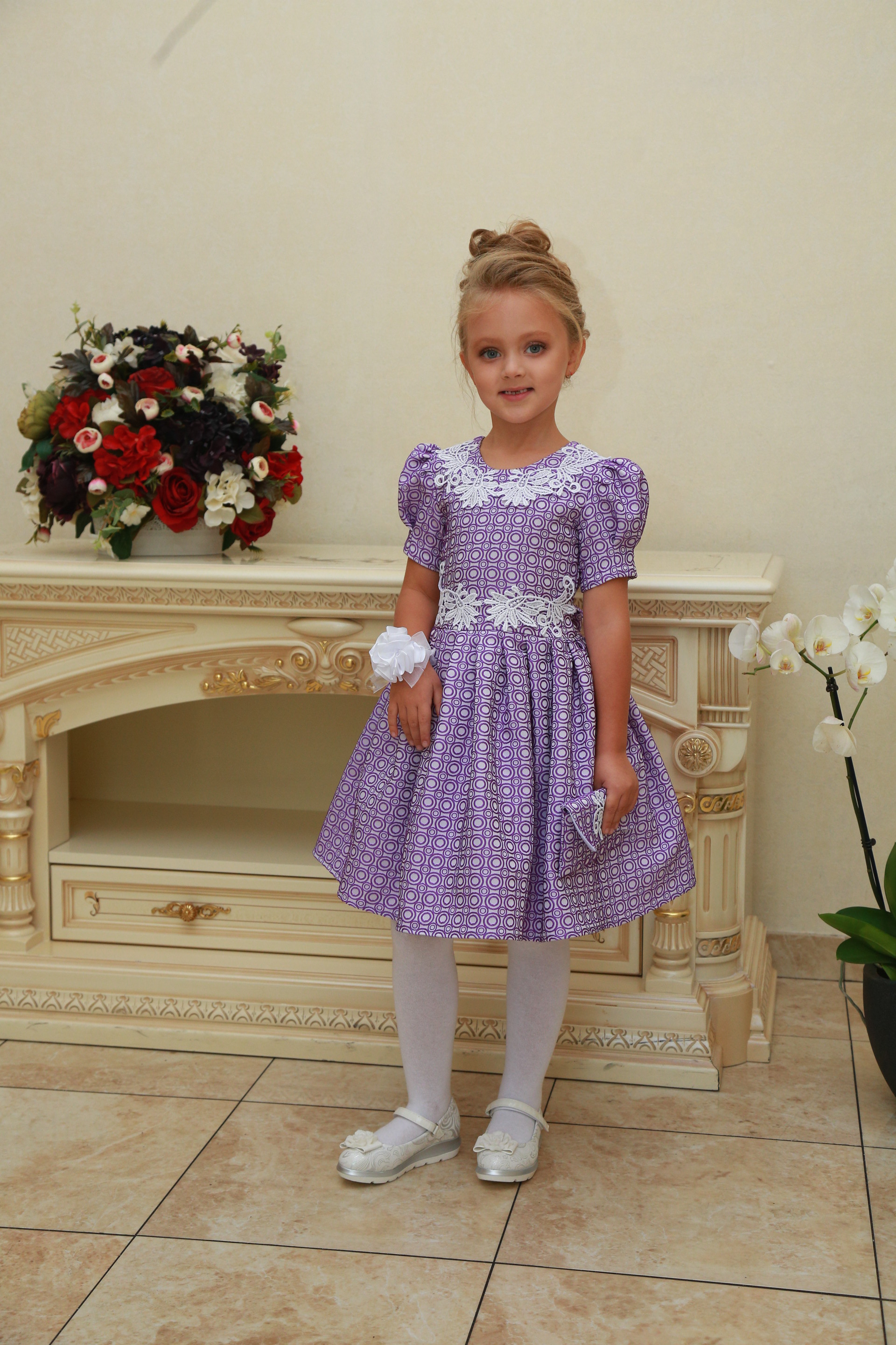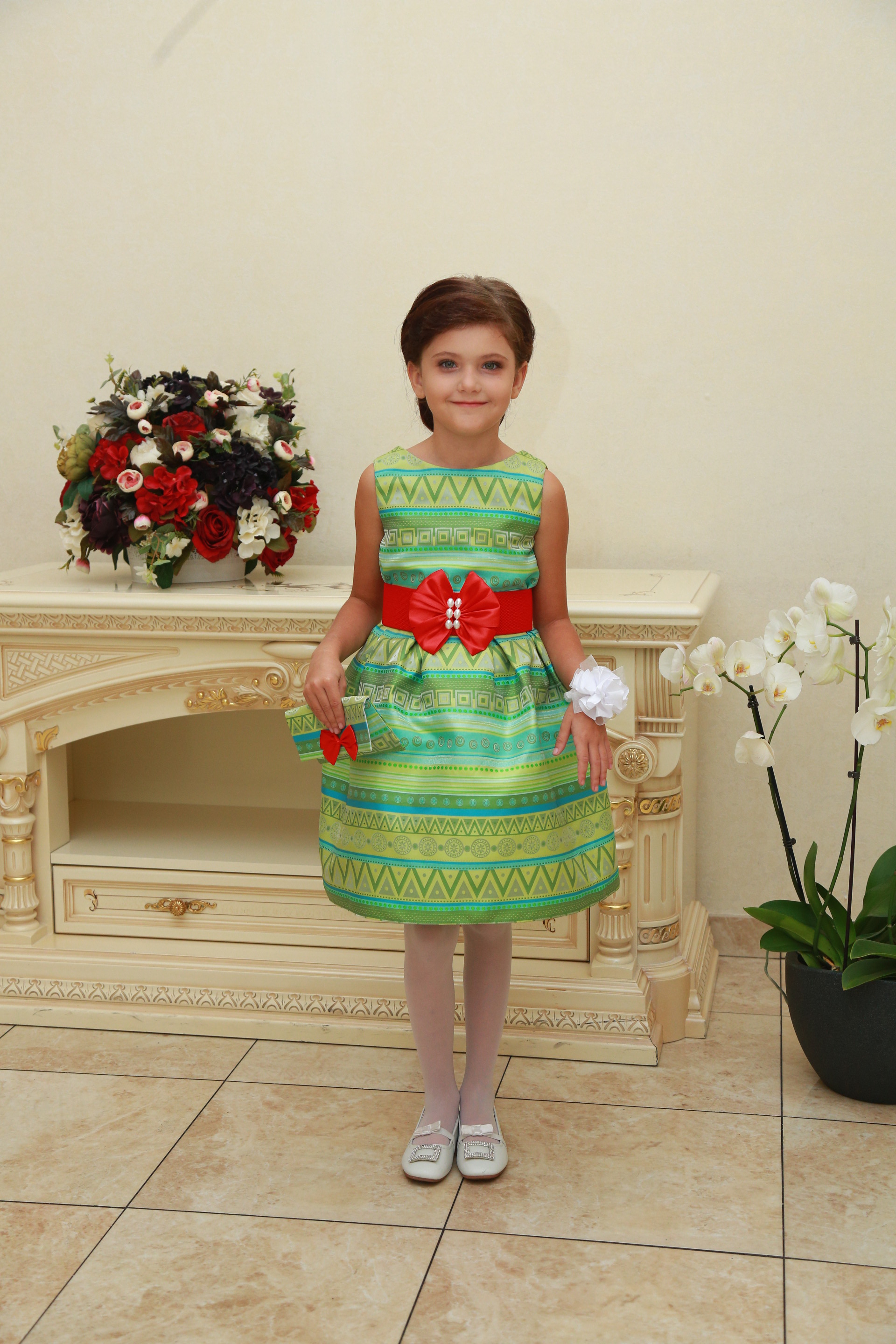 Описание модели: Ткань - х/б, штапель, х/б подклад. Отделка - бант.Размеры от 3 до 8 лет