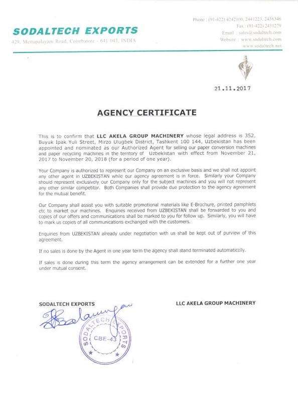 Компания OOO «AKELA GROUP MACHINERY» — это успешно и стабильно развивающаяся компания, входящая в группу компаний «AKELA GROUP», которая была основана в 2004 г. На сегодняшний день компания занимает одно из ведущих мест среди поставщиков оборудования в Узбекистане и Центральной Азии по переработке бумаги, печатных станков и упаковочного оборудования, а также расходных материалов. В компании создана вся необходимая инфраструктура для участия в реализации проектов любого уровня сложности. Клиентам компании предлагается: • Консалтинг (построение нового бизнеса, проработка новых направлений развития существующего бизнеса, диверсификация существующего бизнеса и т. д.); • Управление оснащением и переоснащением производств оборудованием; • Поставка, установка и настройка оборудования; • Бывшее в эксплуатации оборудование, модернизация существующего оборудования; • Обучение персонала; • Организация гарантийного и послегарантийного обслуживания; • Спектр индивидуальных программ оперативного сервисного обслуживания; • Информационная поддержка от отдела продаж, в том числе обучение и информирование о новом оборудовании; • Работа с существующими опробованными поставщиками и поиск новых по запросам Заказчиков; • Принятие участия в подготовке проектных решений; • Выполнение комплекса работ по вводу нового оборудования в уже существующий парк машин; • Подготовка документов для сертификации оборудования; • Решение возникающих проблем совместно с сервисно – инженерной службой; • Организация участия и представление интересов Клиентов на специализированных международных выставках. • консультационные услуги по доступу на рынок Узбекистана: данные, услуги и другие виды услуг; • услуги LCL и FCL; • Содействие широкому маркетингу фирмы, продукции и услуг в Узбекистане.