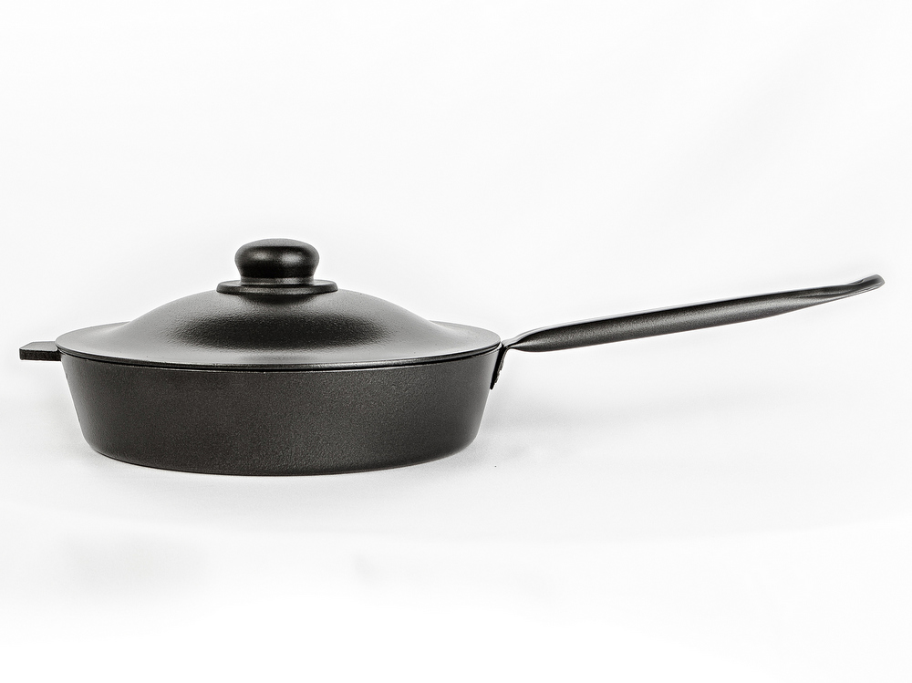 Хозяюшка (сковорода универсальная) с метал. ручкой и крышкойДиаметр - 260 ммОснование - литой алюминий толщиной 4,2 мм.Высота - 60 ммРучка - литаяВнутреннее и наружное покрытие - антипригарное "Ладофлон"Цвет - черныйСковорода Хозяюшка: литая алюминиевая с литой несьемной ручкой, утолщенным дном, крышкой и антипригарным покрытием. Хозяюшка прекрасно подходит для приготовления повседневных блюд.При использовании Хозяшки стоит использовать деревянные или пластиковые лопатки для сохранения антипригарной поверхности сковороды. Не рекомендуется оставлять сковородку на огне или варочной поверхности без содержимого на поверхости сковороды.