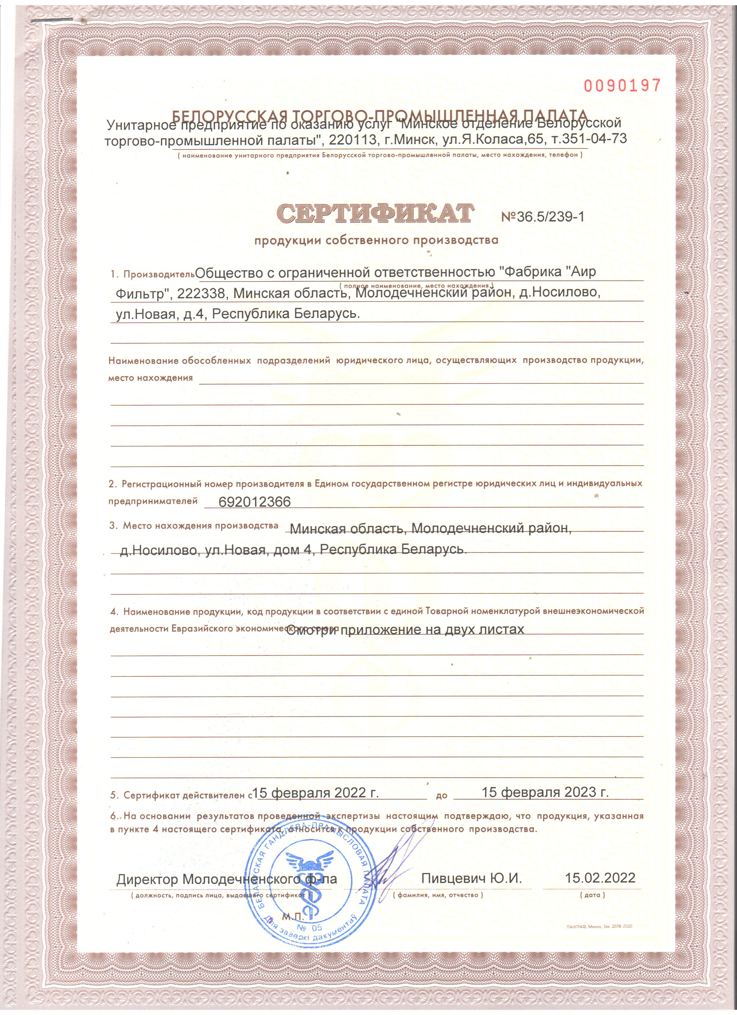 Основанное в 2008. году ООО «Фабрика «Аир Фильтр» в настоящее время является ведущим в Республике Беларусь предприятием в области производства воздушных фильтров для систем приточно-вытяжной вентиляции и кондиционирования воздуха общественных зданий и промышленных сооружений, подготовки технологического воздуха, очистки отходящего технологического воздуха от загрязнений. Обладая высококвалифицированными кадрами и хорошо оснащенной производственной базой наше предприятие может выпускать фильтры всех классов очистки, видов и типоразмеров. Изготавливаем по индивидуальным размерам воздушные карманные фильтры, компактные фильтры, панельные фильтры, складчатые фильтры, Hepa фильтры абсолютной очистки, а также фильтры для камер окраски и лакировки.