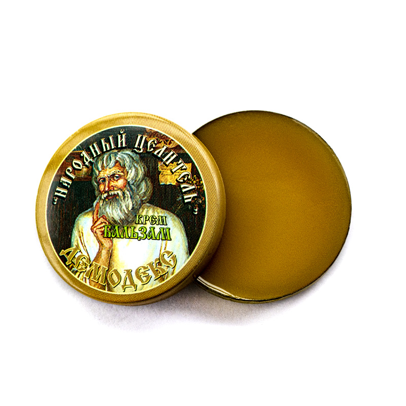 Эффективное средство на основе берёзового дегтя, серы и экстрактов лекарственных растений. Корень женьшеня имеет богатый состав, благодаря которому препараты из него положительно влияют на подкожный кровоток, улучшают тканевое дыхание, ускоряют процессы заживления, подавляют жизнедеятельность вирусов, паразитов и патогенных микроорганизмов, улучшают общее состояние кожи. Экстракт чистотела издавна применяют при кожных заболеваниях, в комплексе с эфирным маслом лаванды и экстрактом календулы используется для лечения язв, угрей, лишаев, чесотки и других поражений кожи. Экстракты клевера и девясила обладают противовоспалительным, дезинфицирующим действием, содержат природные биогенные стимуляторы. Экстракт полыни способствует регуляции обмена веществ в коже, быстрому выведению токсинов, лечит раздражение кожи, покраснения, зуд и отеки. Березовый деготь и сера усиливают кожный обмен и кровообращение, оказывают противопаразитарное действие, поддерживают кислородный баланс в коже, делают ее более эластичной. Состав: вазелин, жир свиной, дёготь берёзовый, сера, эфирное масло лаванды, экстракты женьшеня, полыни, чистотела, девясила, календулы, клевера. Способ применения: при угревой сыпи наружно 2-3 раза в день наносить бальзам тонким слоем, из расчета 0,2 - 0,3г. на 1 см², на очищенную и сухую поверхность кожи (места появления сыпи) и осторожно втереть