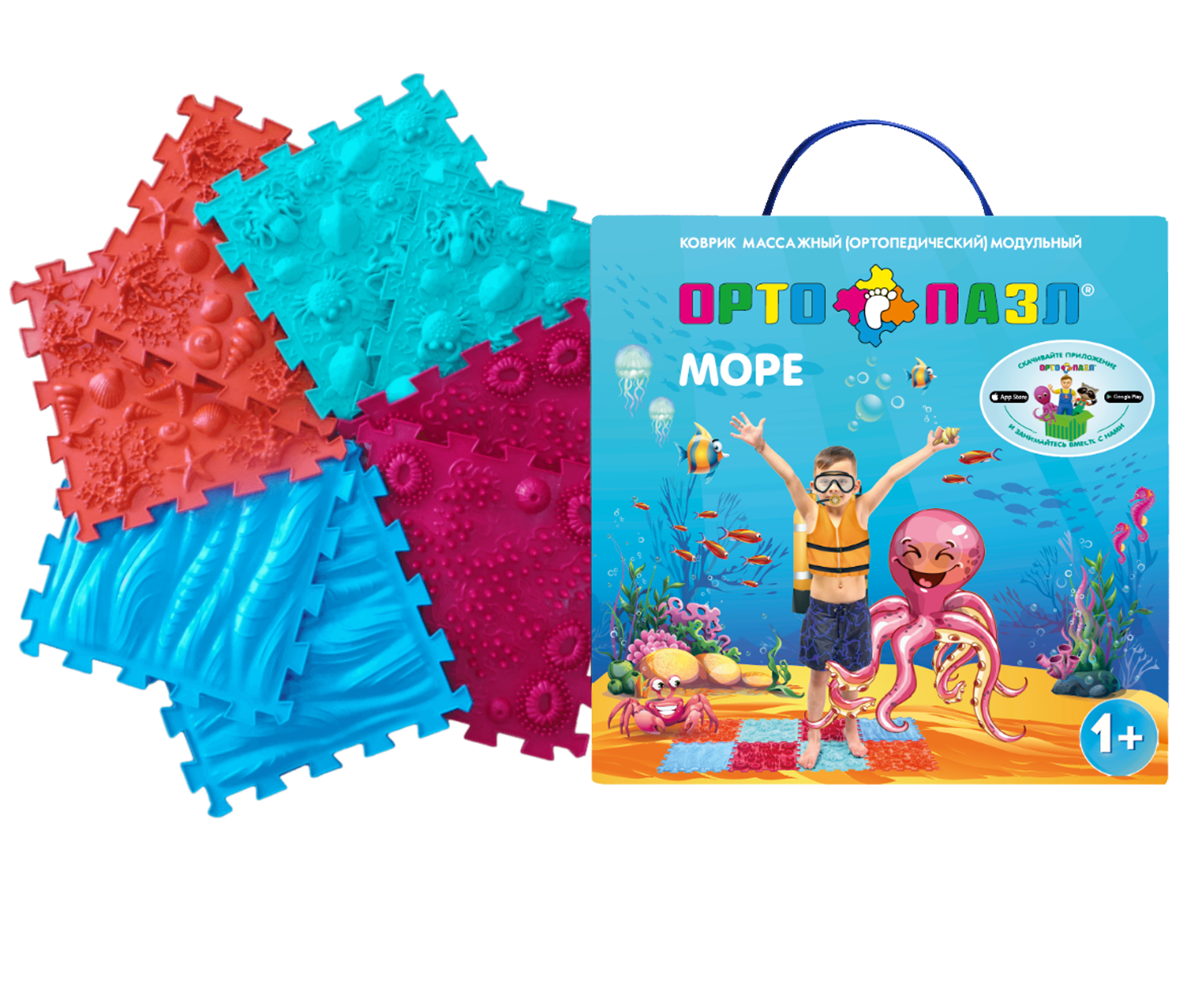 МИКС «Море» - для детей от 1 годаМатериал: ПВХКомплект, состоящий из восьми модулей, по паре каждого вида:- 2 модуля “Морское Дно” оранжевого цвета,- 2 модуля “Океан” бирюзового цвета,- 2 модуля “Морской Риф” рубинового цвета,- 2 модуля “Морская Волна” голубого цвета.МИКС позволяет бороться с такими заболеваниями как: гипертонус и гипотонус мышц стопы и голени, артрит, бессонница, гиперпронация, плоскостопие. МИКС «Море» создаёт приятные ощущения, полностью заменяет морское путешествие и погружает в атмосферу глубинного мира.