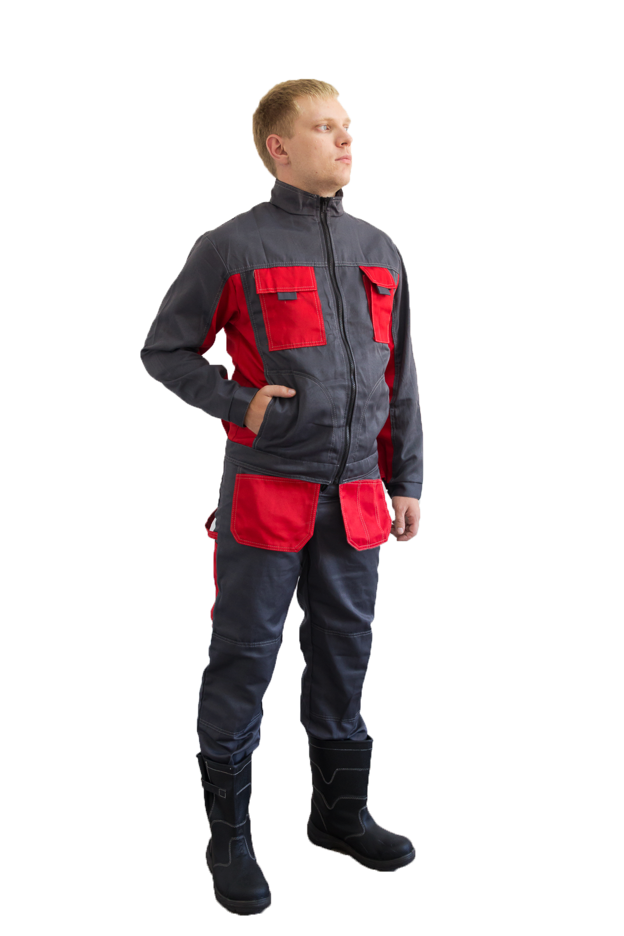 Цвета:т.серый/красный Тип:Смесовая 65% п/э; 35% х/б; В/О пропитка Плотность: 210±10 гр.м2 Куртка: куртка укороченная, застегивается на молнию; удобная модель имеет множество деталей, карманов. Полукомбинезон: с боковыми накладными карманами. Усиление в области колен.