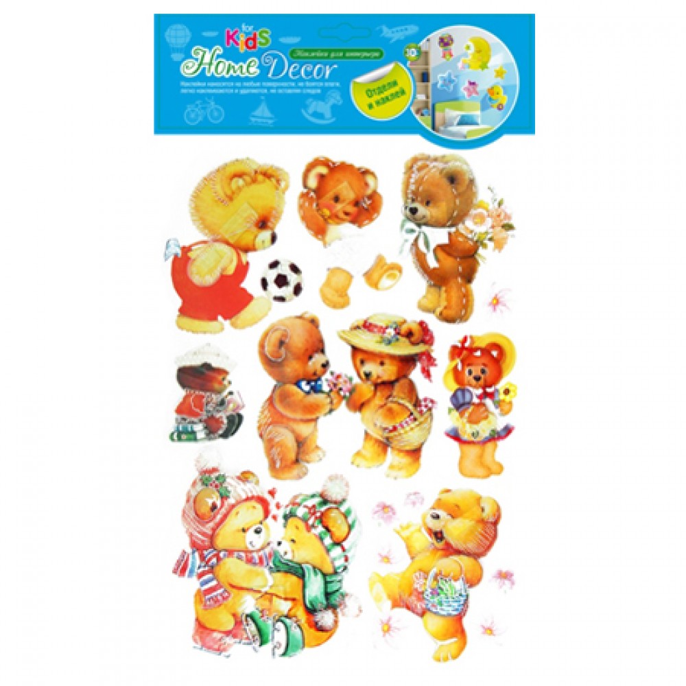 Декоративная наклейка "Мишки", арт. DNF 010A Влагостойкие наклейки. Подходят для использования в ванных комнатах. Декоративные наклейки подарят Вам драгоценную возможность изменить наскучивший интерьер, не потратив кучу денег и времени.Наклейки легко наносятся на гладкие поверхности: обои, крашеные стены, пол, потолок, мебель, зеркала и т.д. За ними легко ухаживать.Размер: 30,5*30,5см, 5 элементовМатериал: ПВХ