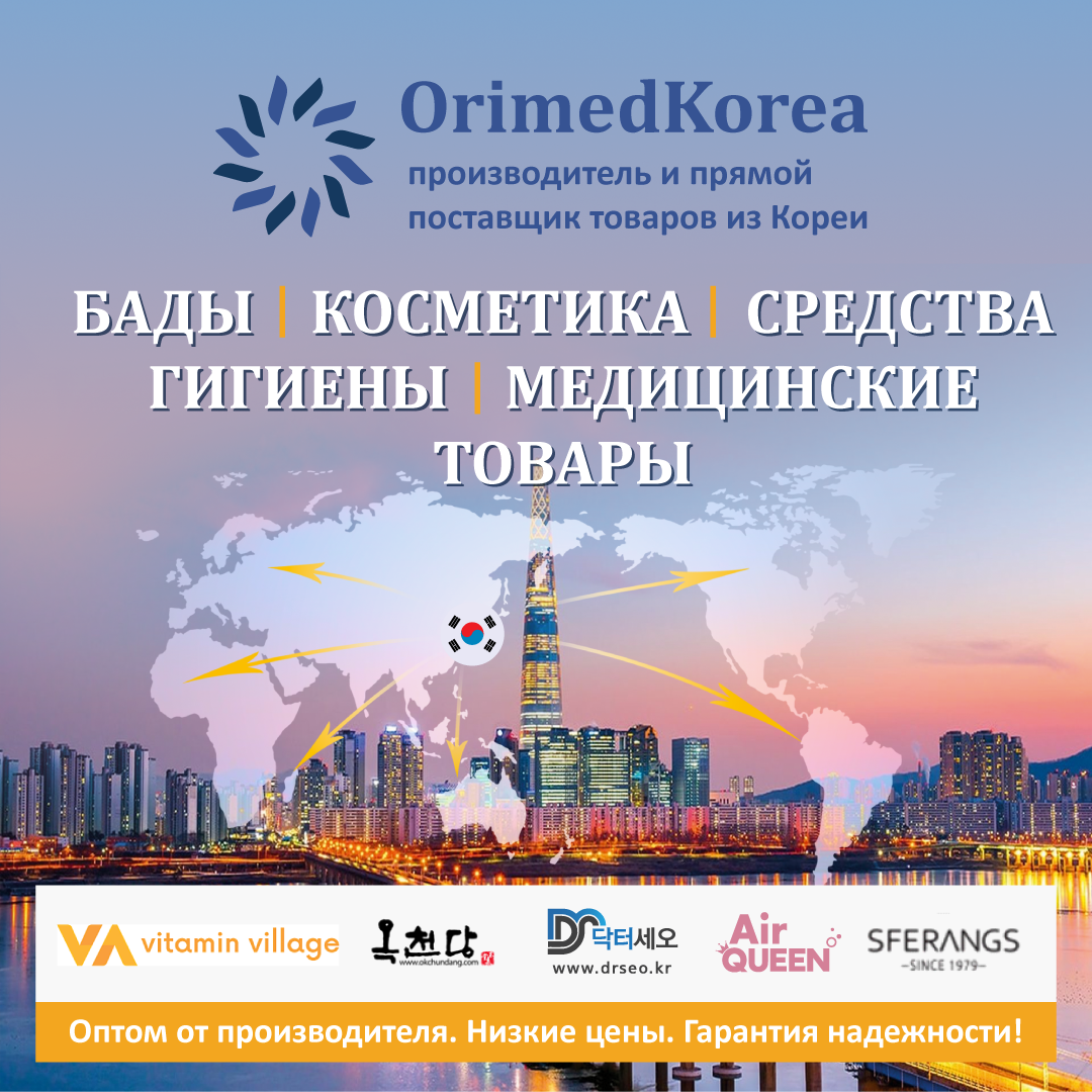 «ОримедКорея» Производитель и официальный представитель известных корейских фабрик. Прямой поставщик товаров из Кореи. Наша компания предлагает полный спектр услуг по поставке товаров из Кореи. А также ищем партнеров, дилеров, оптовиков, региональных представителей. Широкий ассортимент, самая востребованая, интересная и качественная продукция, низкие цены. - Пищевая продукция - Бады, витамины и пищевые добавки - Средства гигиены - Профессиональная косметика Препараты и вся продукция Сертифицированы Взаимовыгодные условия для всех, гарантия надежности! Гарантия безопасности закупки, надежная доставка в РФ и страны СНГ, растоможка и полная документация.