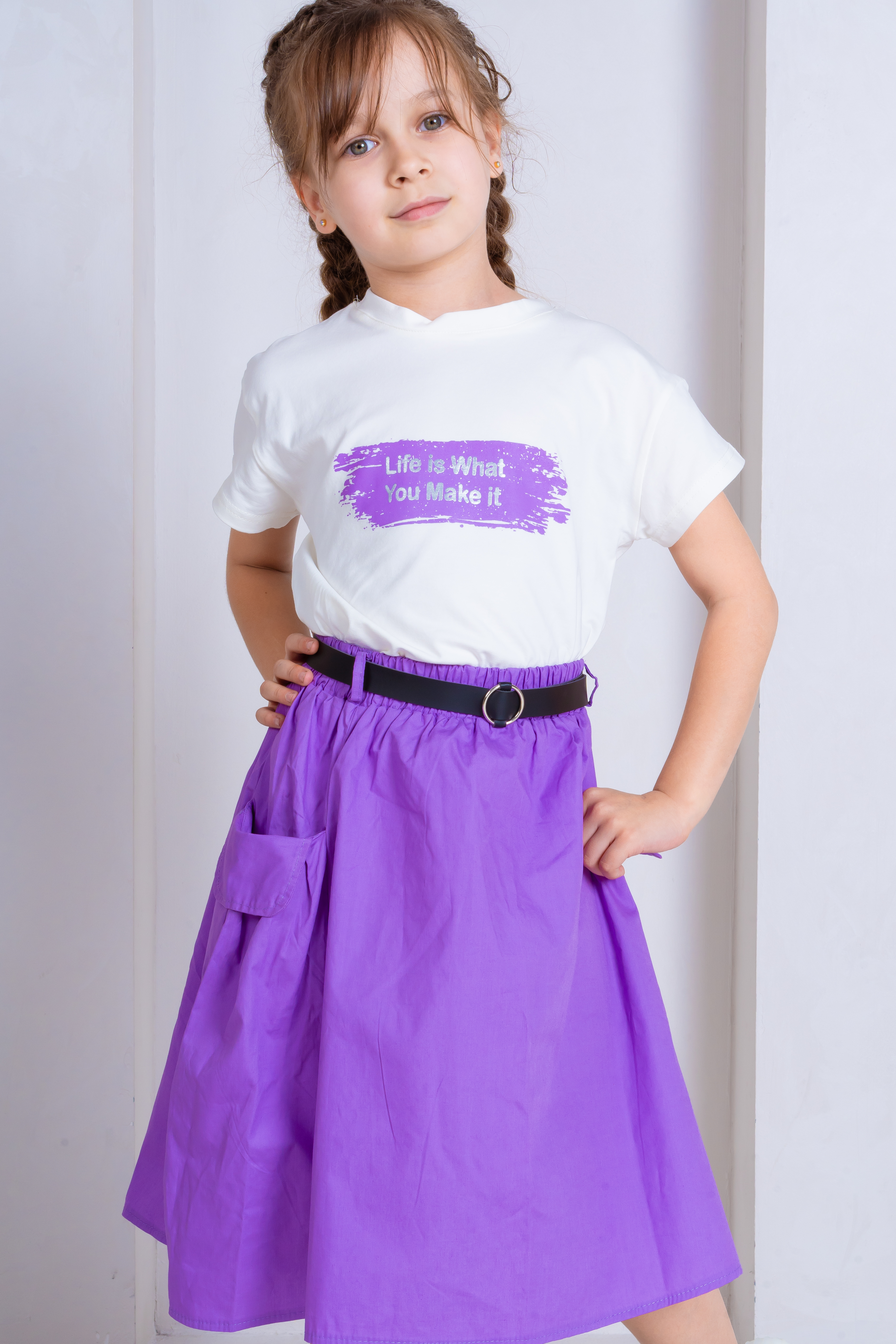 Двойка из футболки и юбки с принтом - стильный и удобный комплект для вашей маленькой модницы. Футболка с принтом добавит яркости и оригинальности образу, а юбка создаст легкий и женственный образ. Такой комплект отлично подойдет для повседневной носки, прогулок и игр с друзьями, гармонично сочетая в себе комфорт и модный стиль.