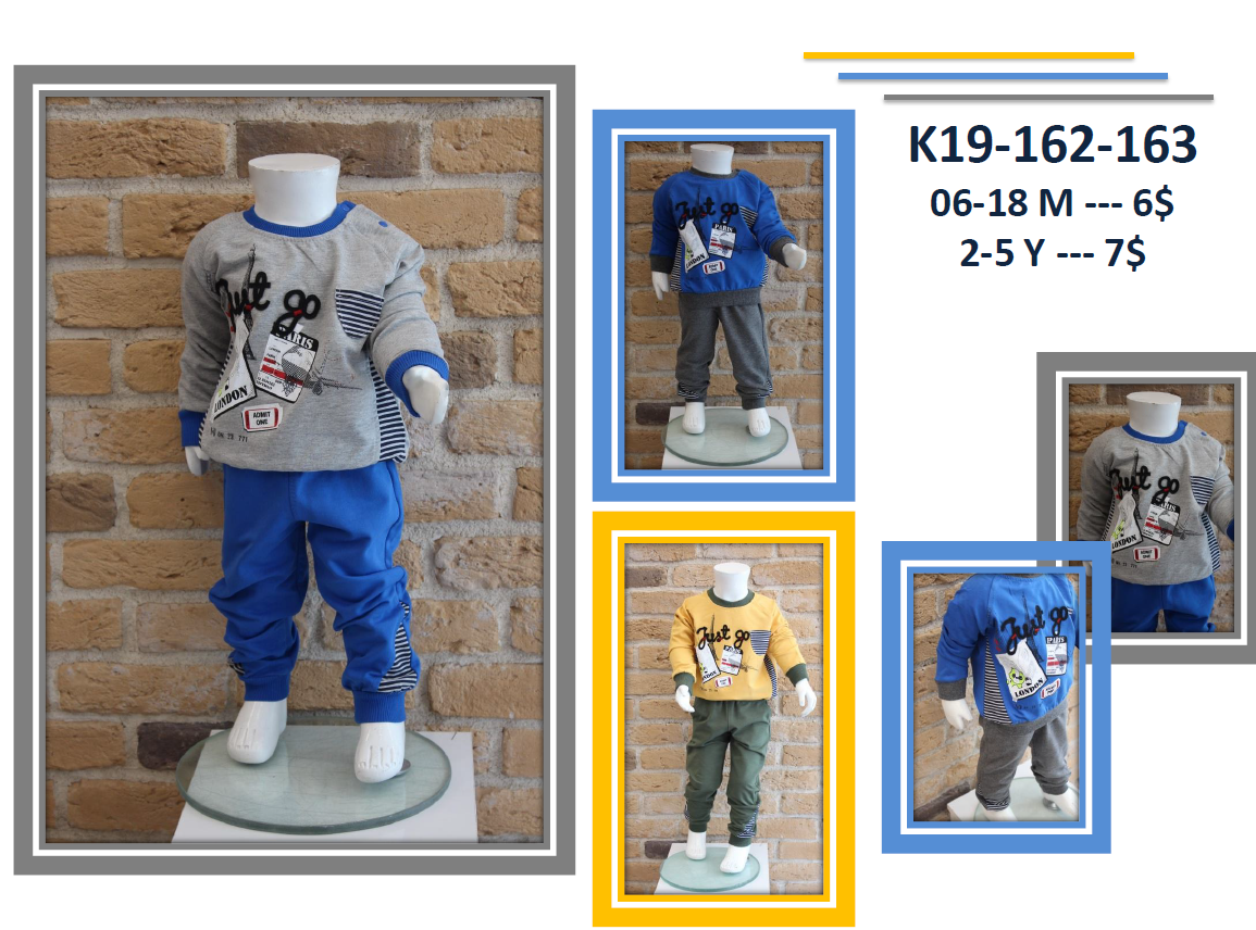 СПОРТИВНЫЙ КОСТЮМ С КАРМАНАМИ 6-18 месяцев (инвентарный код: K19-162) Возраст 2-5 (инвентарный код: K19-163) Сделано в Турции