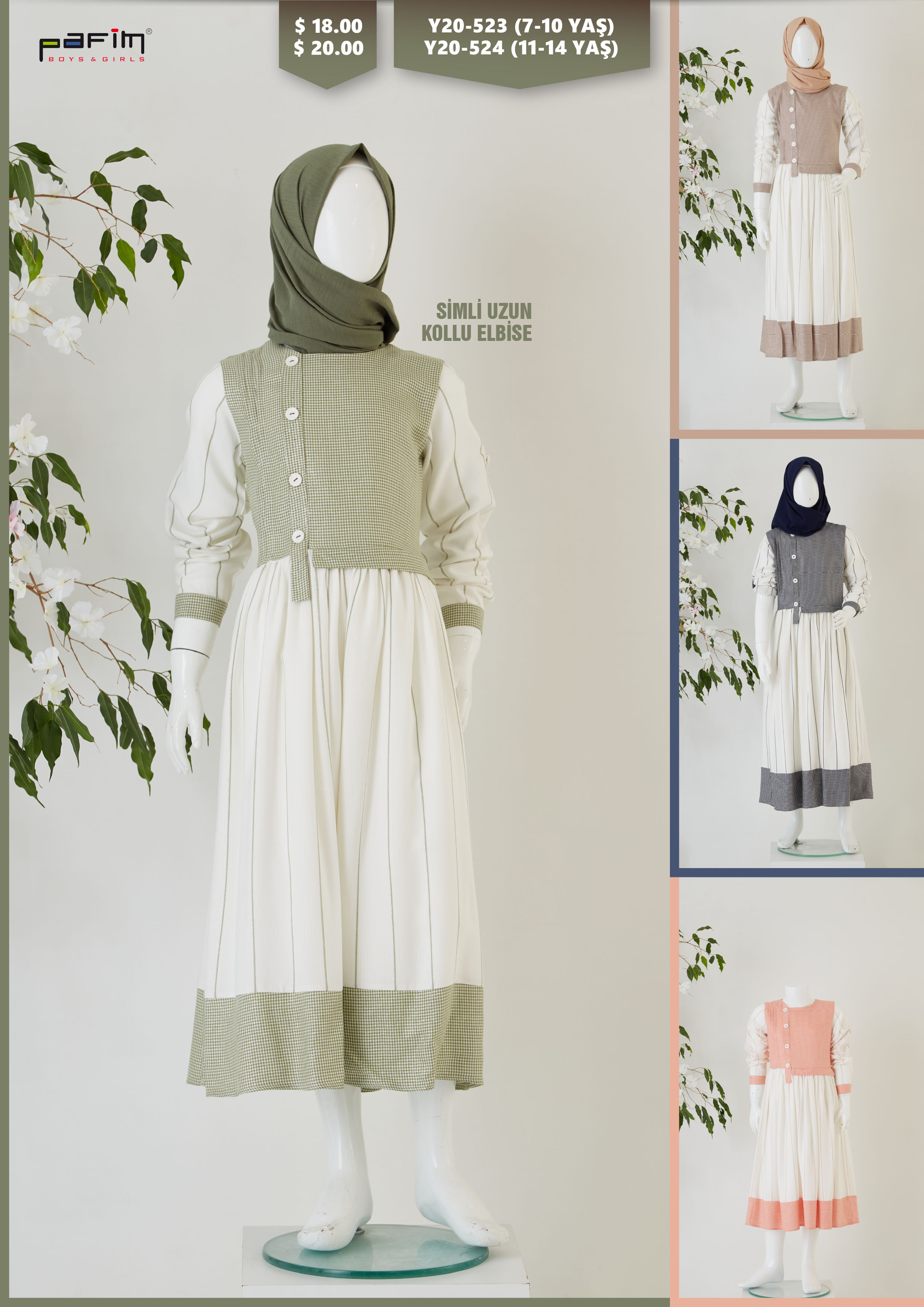 Платье с длинным рукавом 7-10 лет (код акции: Y20-523) 11-14 лет (код акции: Y20-524)