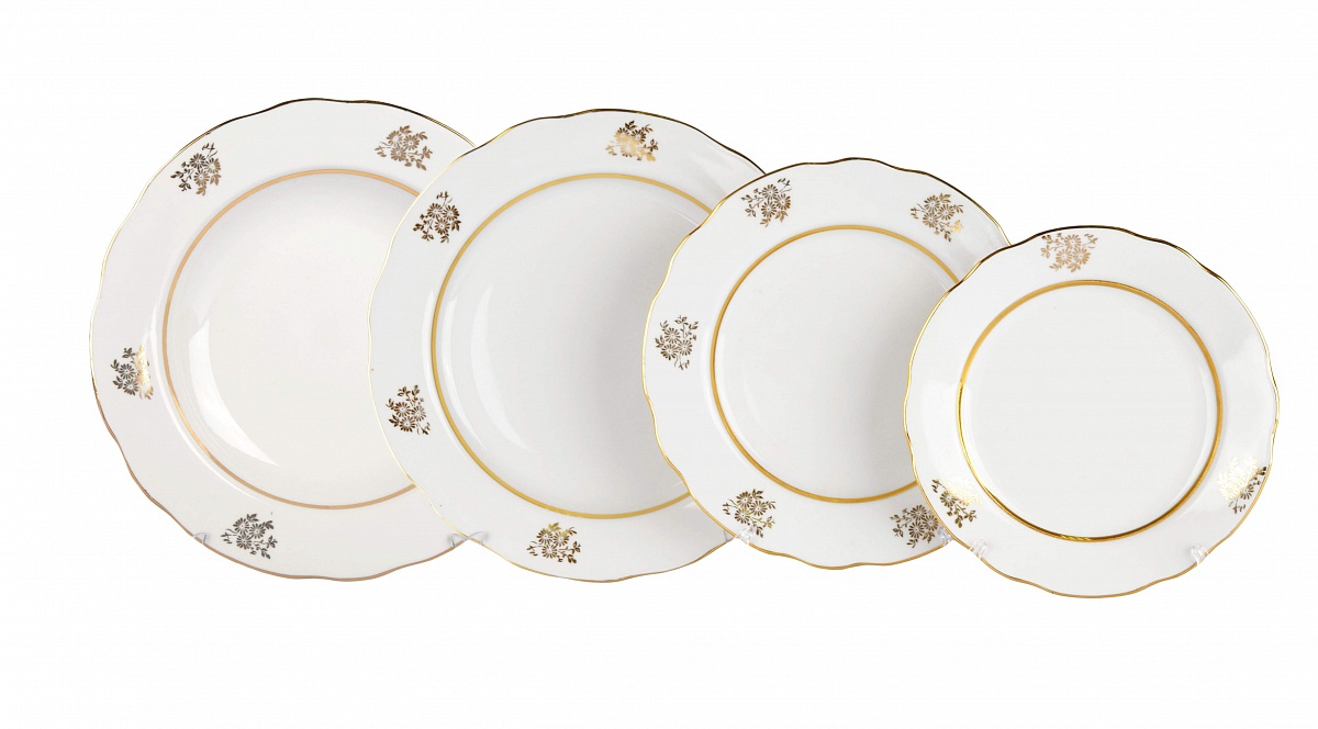 Производитель: Дулевский фарфоровый завод Тип товара: Набор тарелок Название товара: Ромашки с лентой Форма товара: Вырезной край Материал: Фарфор