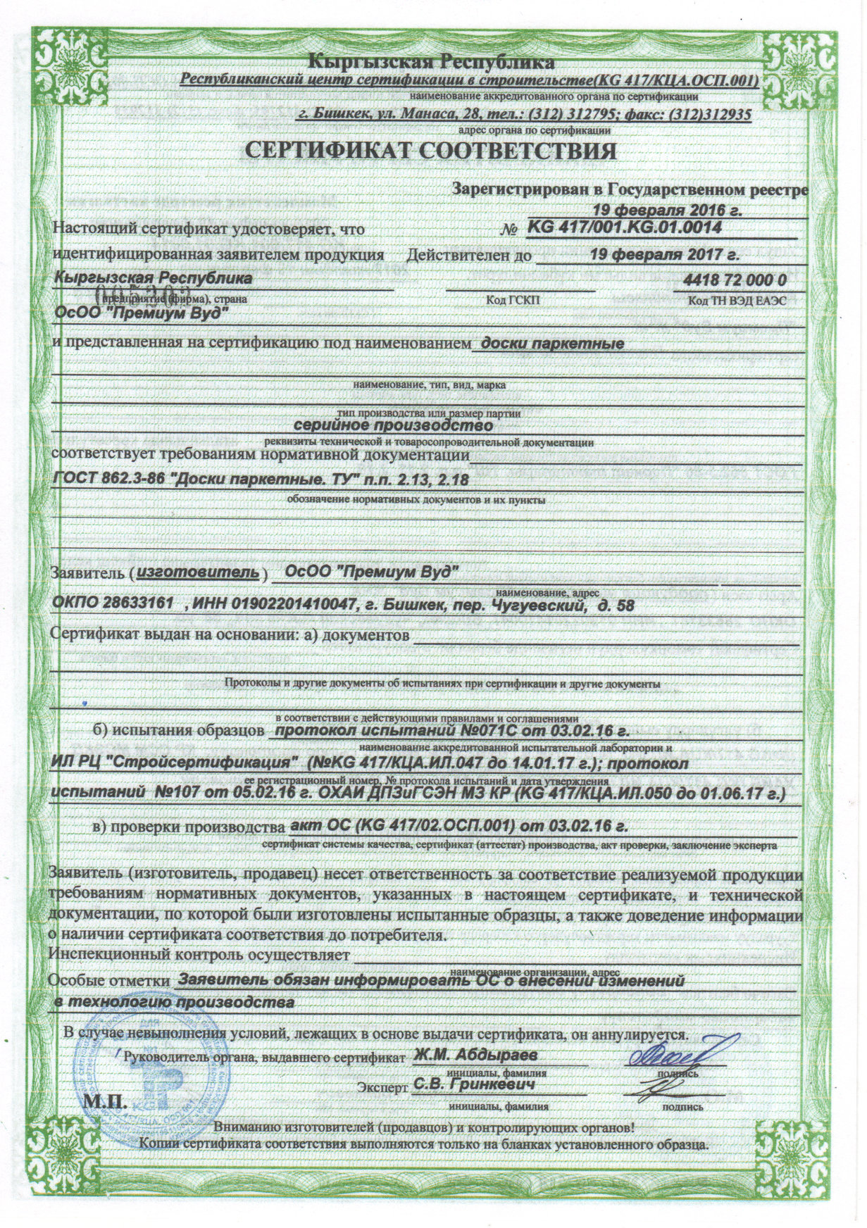 | Дом и строительство, Строительные материалы, Напольные покрытия | Киргизия, пер. Чугуевский 58 |