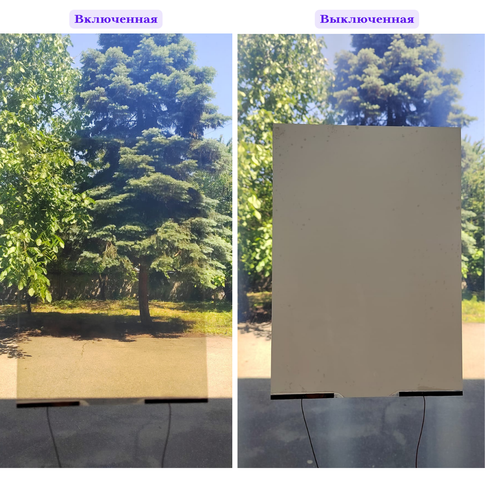 Смарт пленка Proektsia (Проекция) с функцией переменной прозрачности от матовой до прозрачной – это специальная полимерная жидкокристаллическая пленка, которая наклеивается на любые стеклянные поверхности, с целью регулировки прозрачности стекла за доли секунды с пульта : от матовой до прозрачной и от серой до прозрачной. Всего одно нажатие кнопки – и стекла могут скрыть обстановку от посторонних глаз или стать прозрачными.