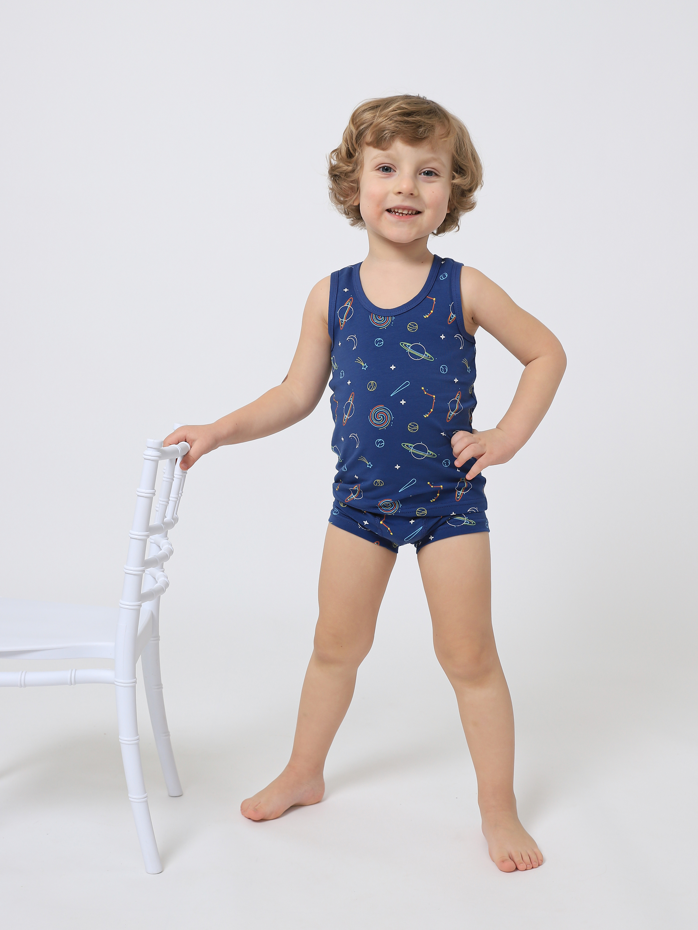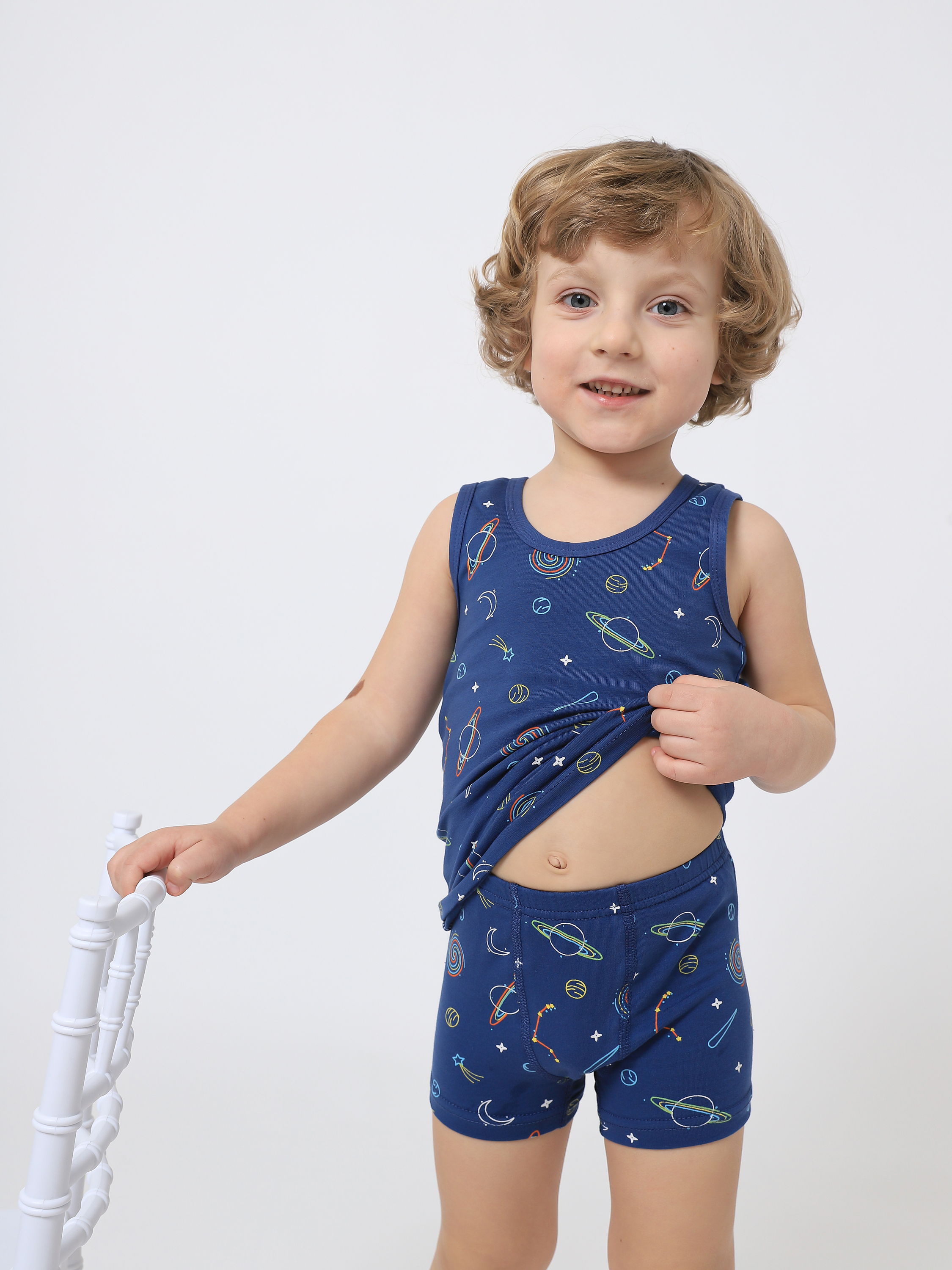 Детское белье ELDAANA. Комплекты нательного детского белья для малышей. Сделаны из мягкого хлопкового трикотажа. Мягкий дышащий материал приятен к телу, не колется, сохраняет насыщенность цвета даже после многочисленных стирок, не скатывается и не растягивается. Комплекты детского белья представлены в многочисленных базовых нежных расцветках. Майка детская нательная с широкими бретельками, трусики боксеры с комфортной ластовицей и удобными швами. Комплекты подойдут в садик как сменное бельё, домашняя одежда, комплект для сна.