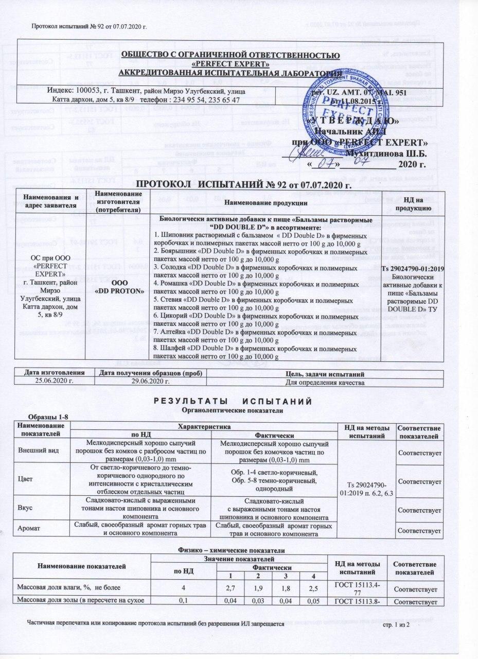ООО «DD PROTON» разработчик оборудования и технологии по глубокой переработке растительного сырья, а также производитель быстрорастворимых напитков на основе композиции сухих порошкообразных экстрактов лекарственных растений горной флоры Узбекистана.