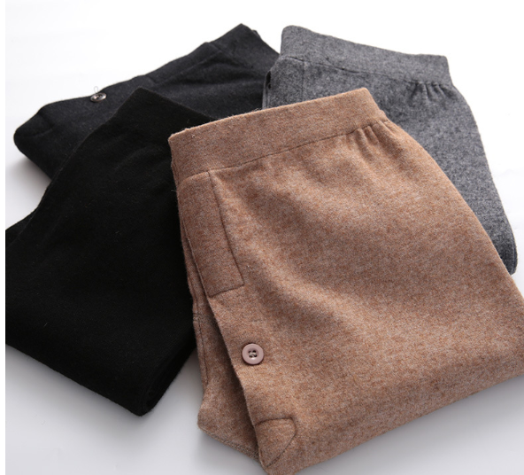 Осенние и зимние новые мужские тонкие шерстяные брюки женские однослойные узкие эластичные шерстяные брюки кашемировые трикотажные нижние брюки - 75233
