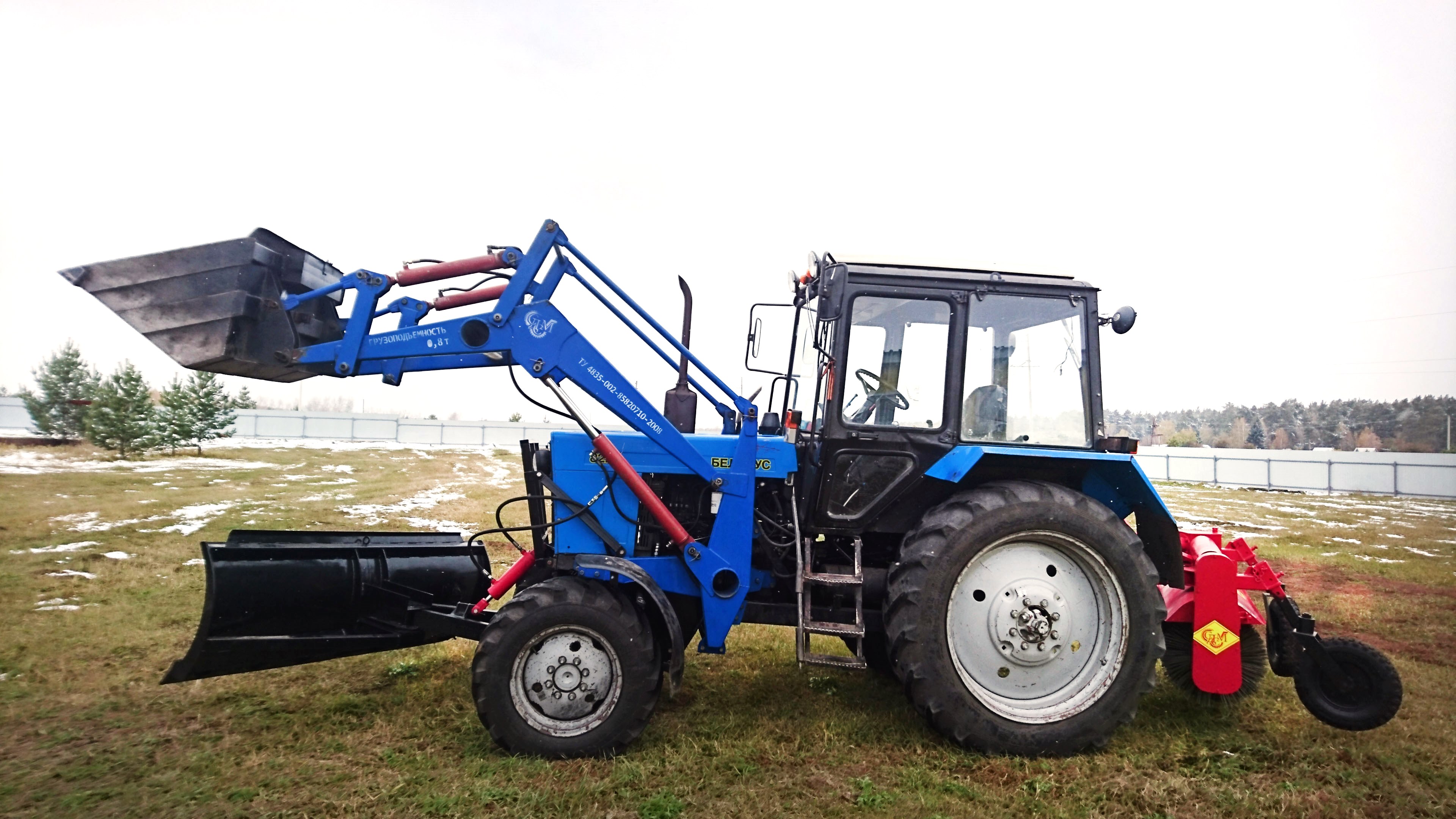 Погрузчик фронтальный универсальный ПКУ-0.8. Предназначен для выполнения работ: погрузка и перевозка различных грузов и материалов (песок, гравий, лес, сено, рулоны, снег и т.д.). Агрегатируется с тракторами МТЗ-80, МТЗ-82, Т-40, ЮМЗ-6. Номинальная грузоподъёмность 800 кг. Максимальная высота разгрузки 3,8м. Может увеличиваться за счет установления дополнительной опции – удлинитель стрелы (+0,7 м). Конструкция погрузчика усилена ребрами жесткости. В комплекте имеются: рамка защиты радиатора, разгружающие балки к заднему мосту трактора. Гидроцилиндры оборудованы шарнирными соединениями (СШ), все пальцы погрузчика термически обработаны (закалены). Элементы, имеющие трение, оснащены пресс-масленками, что увеличивает ресурс погрузчика. По желанию клиента погрузчик комплектуется рамкой быстросъёма рабочих органов. Продукция сертифицирована. Комплектуется согласно заказа потребителя. Гарантия 1год. Таким образом, погрузчик нашего производства обладает увеличенным ресурсом, прост в обслуживании и имеет большой ассортимент рабочих органов. *Цена указана без стоимости рабочих органов