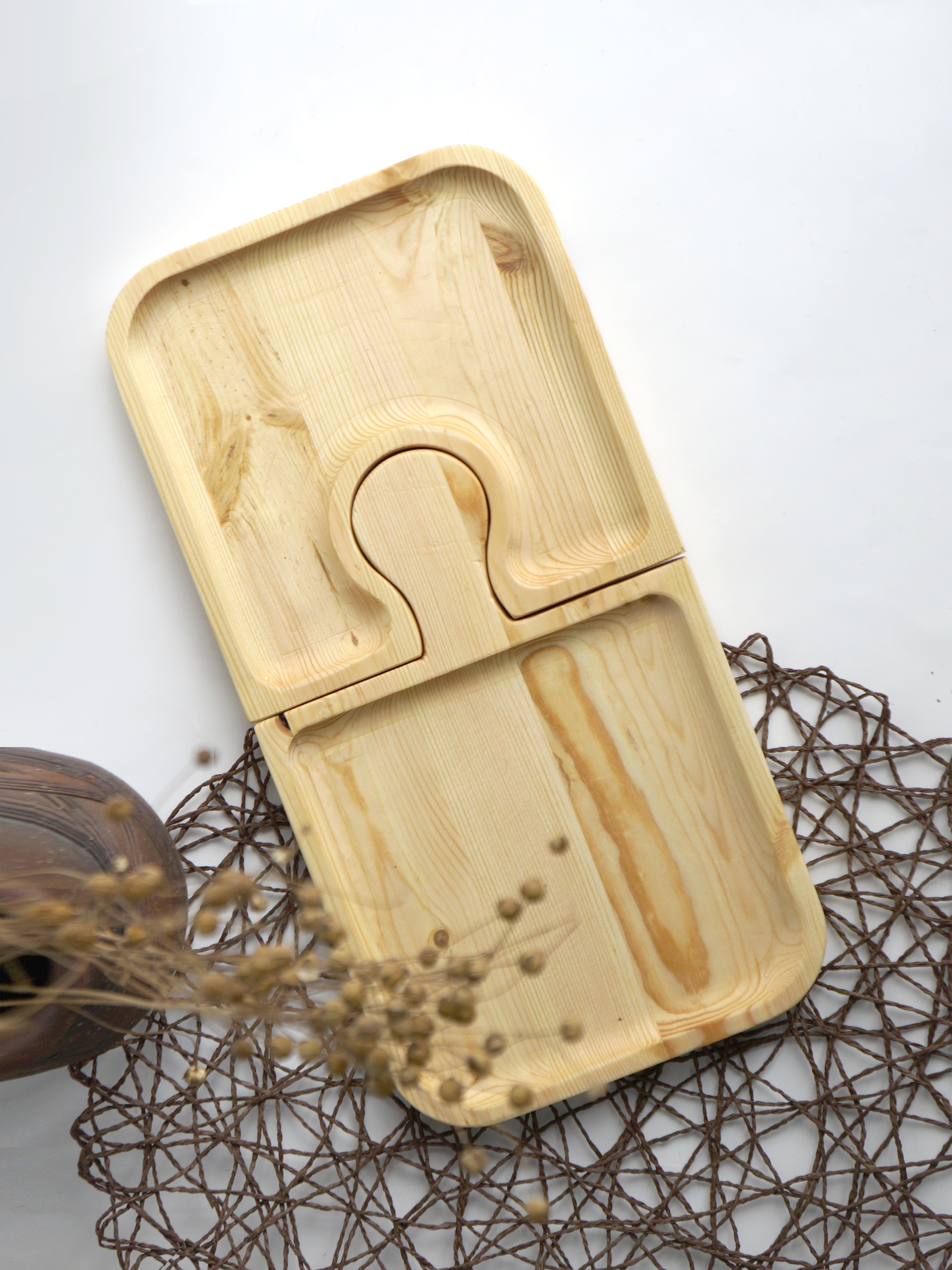 Деревянная менажница - это оригинальный декор интерьера и стильный предмет на любой современной кухне. Посуда ( поднос ) для сервировки стола, изготовленная из натурального дерева абсолютно безопасна для здоровья и продуктов, которые на ней сервируются. Также оборотная сторона менажницы может использоваться как разделочная доска, деревянный поднос, тарелка для стейка. Покрытие из защитной смеси масел и восков позволяет сохранить естественную поверхность древесины, делая её устойчивой к образованию пятен, воздействию влаги, гниения и появления любых видов грибка. Менажница ( тарелка из дерева ) будет отличным оригинальным подарком для жены, коллеги, мужа, подруги, на любой случай, как на День рождения, так и подарок на свадьбу, годовщину или юбилей.Обратите внимание: Пазл из 2-х частей, каждая отдельная часть размером: 175х250.