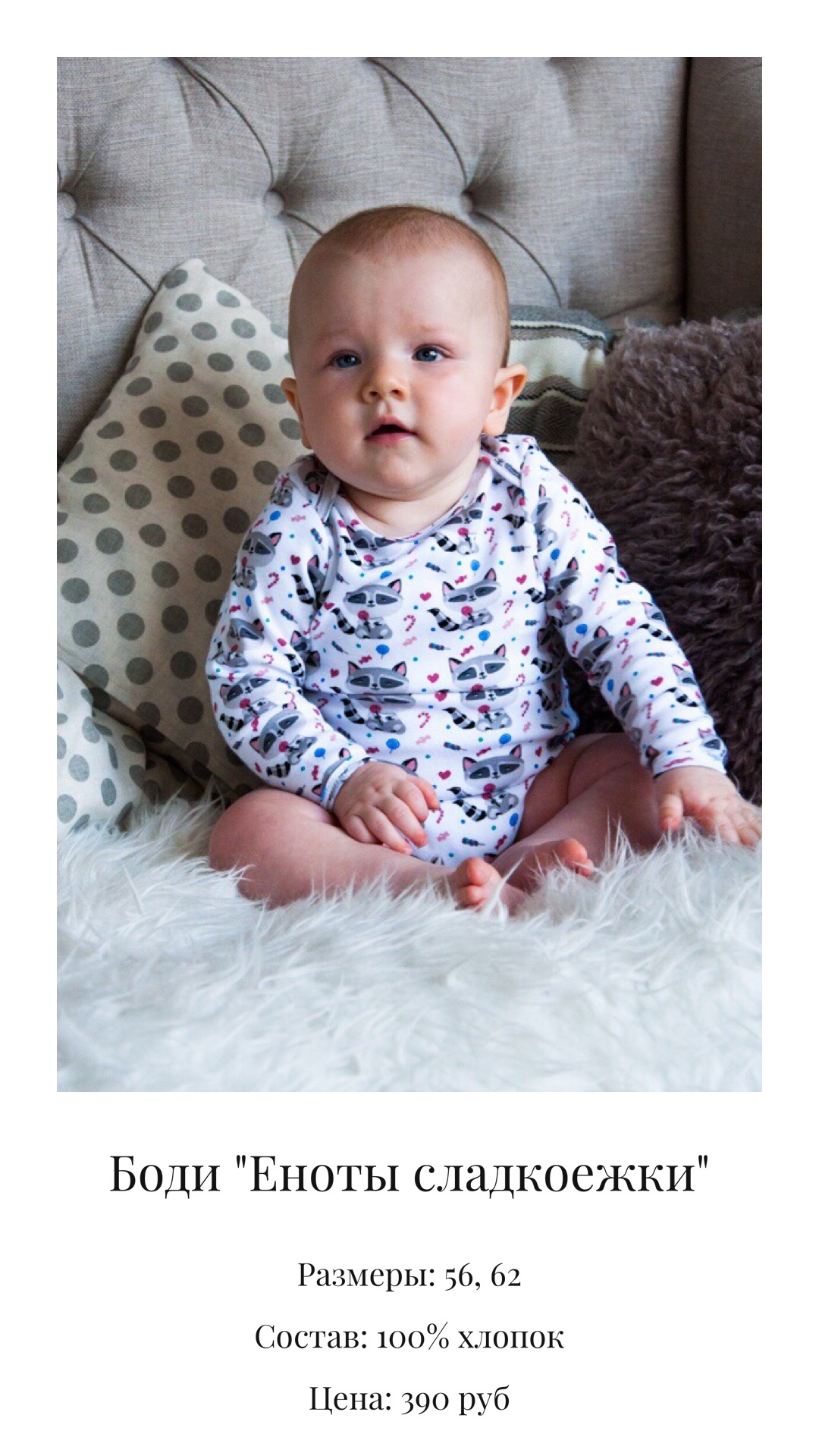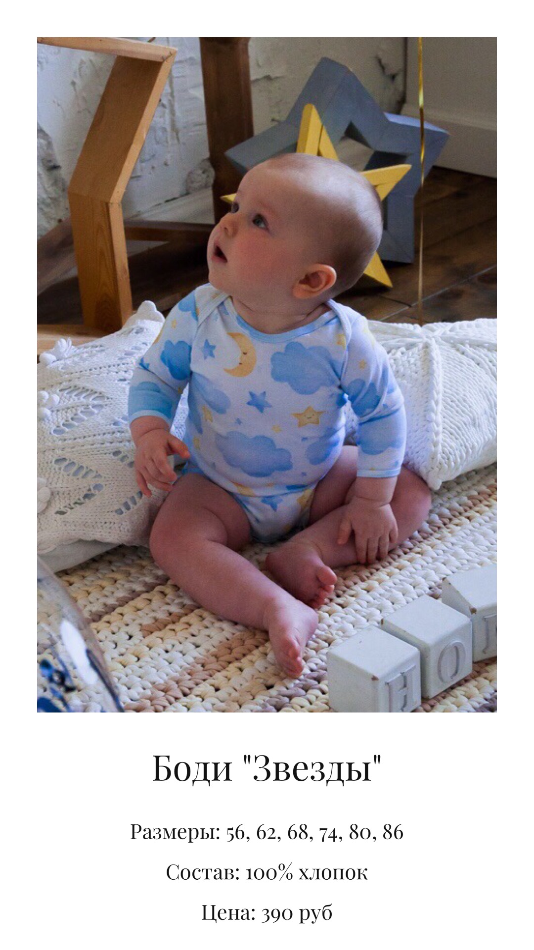 Добрый день. Мы производим детскую одежду от 0 до 3х лет. Только 100% хлопок. Качество гарантируем. Товар сертифицирован на территории ЕС. В фото прикрепляю боди, которые есть в наличии. Под заказ можем сшить: боди (с коротким, длинным рукавом, без рукава как маечку), нательные комбинезоны, ползунки, штанишки, кофточки, чепчики.