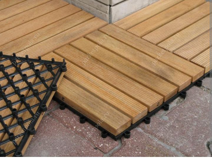 Добрый день. САДОВЫЙ ПАРКЕТ: ХАРАКТЕРИСТИКИ: 310мм.310мм размер одной плитки. Садовый паркет из термоберезы отличается простотой монтажа и презентабельным внешним видом. С его помощью удается украсить приусадебный участок и сформировать ландшафтный дизайн. Паркет является экологически чистым и не содержит вредных для здоровья людей компонентов, т.к. состоит из 100% массива дерева. Благодаря специальной технологии термической обработки древесина приобретает необходимые для эксплуатации свойства. Изделия могут без ограничения применяться в разных климатических условиях, так как не подвержены набуханию от воды и растрескиванию от прямых солнечных лучей. Положительные свойства, обработанной при высокой температуре древесины березы, обуславливают широкие возможности для использования садового паркета на приусадебном участке. Изделия применяются для оборудования: – плоских площадок в саду с целью организации патио; – пола в беседке, на террасе и веранде; – дорожек на загородной территории; – прибассейновой территории; – причалов и пирсов.