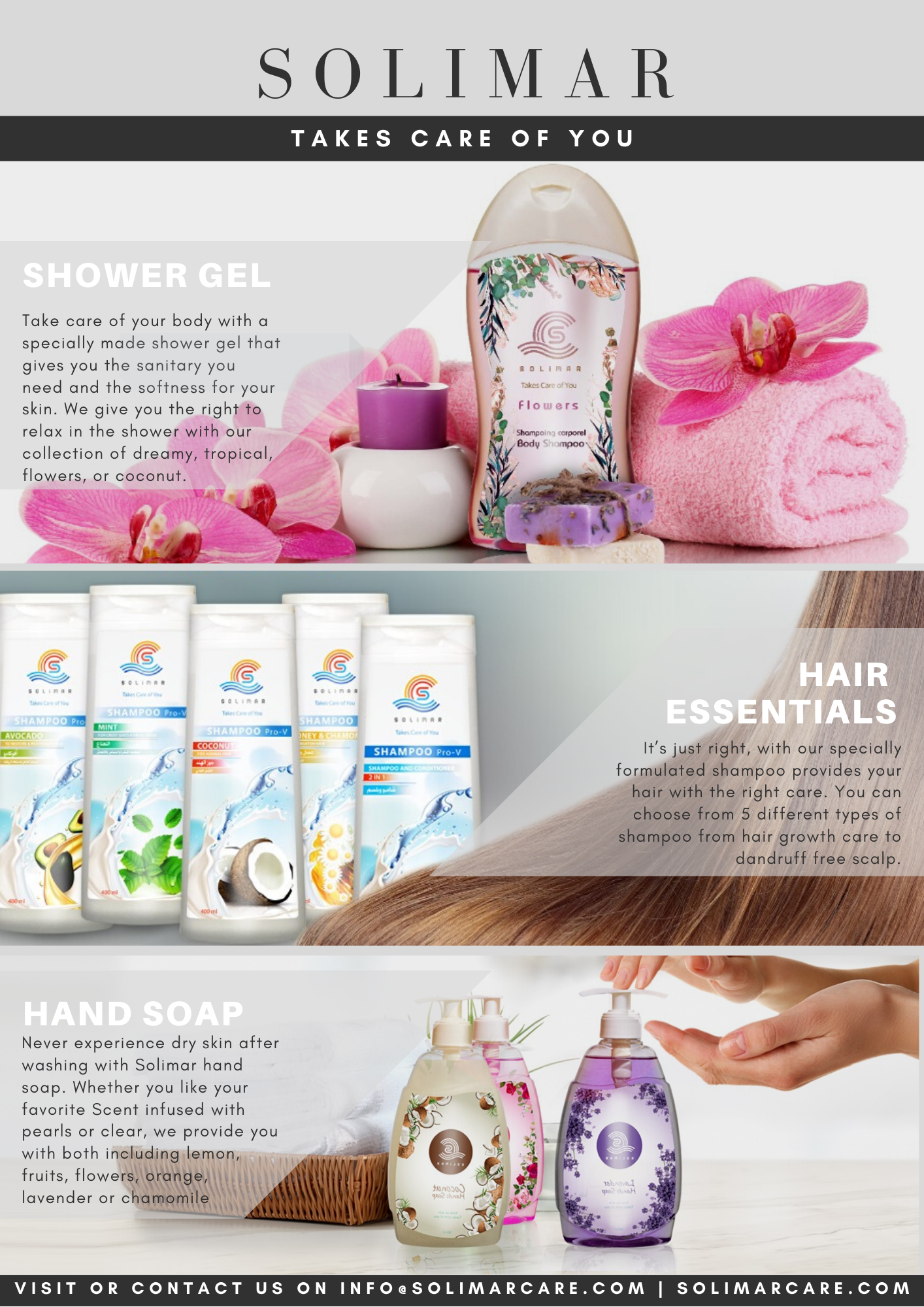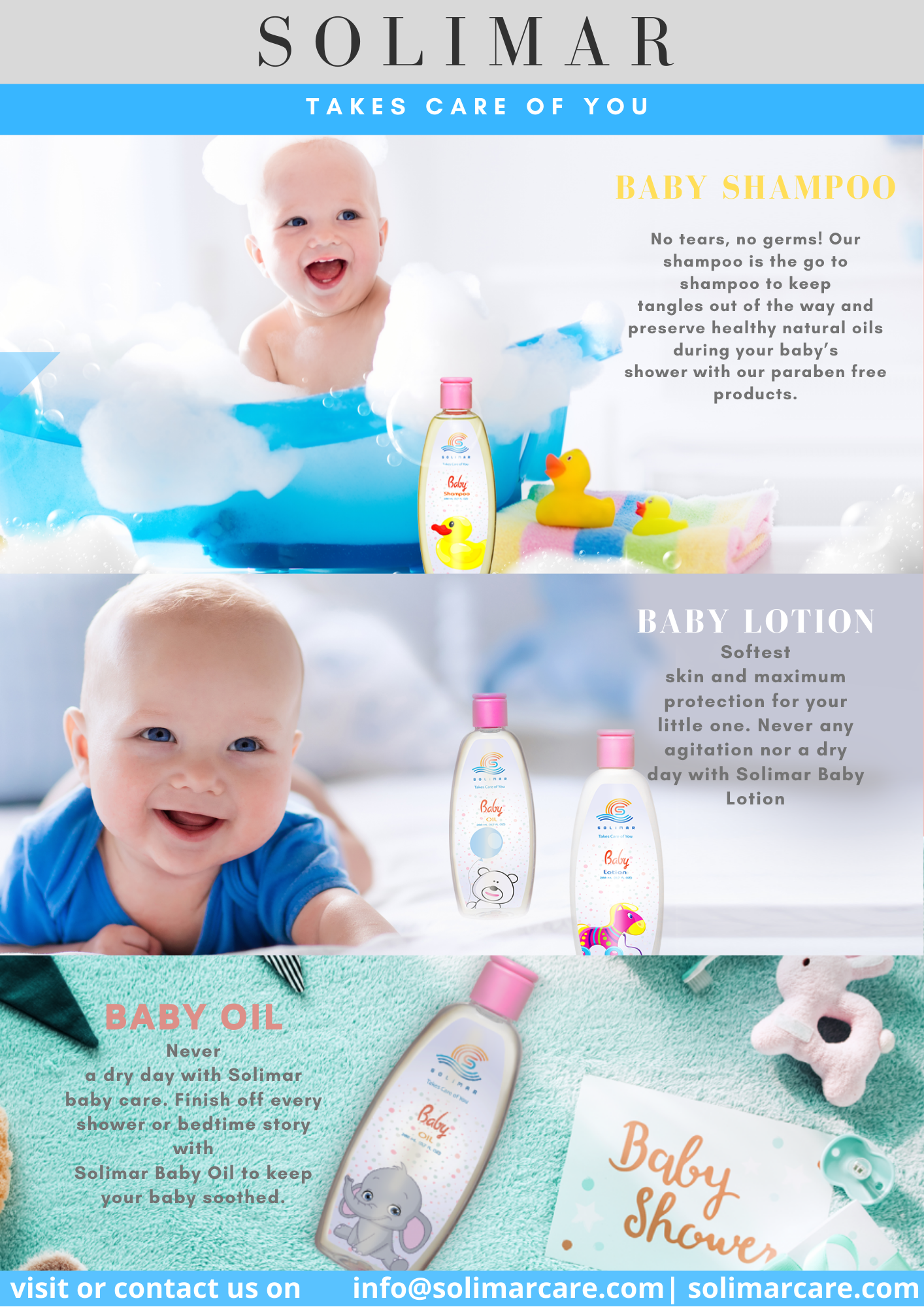 Solimar, is a Turkish brand specialized in providing all your essentials when it comes to personal and baby care. With an array of lotions, oils, shampoos, liquid soap, and sanitary wipes, Solimar takes care of you. [email protected] solimarcare.com
