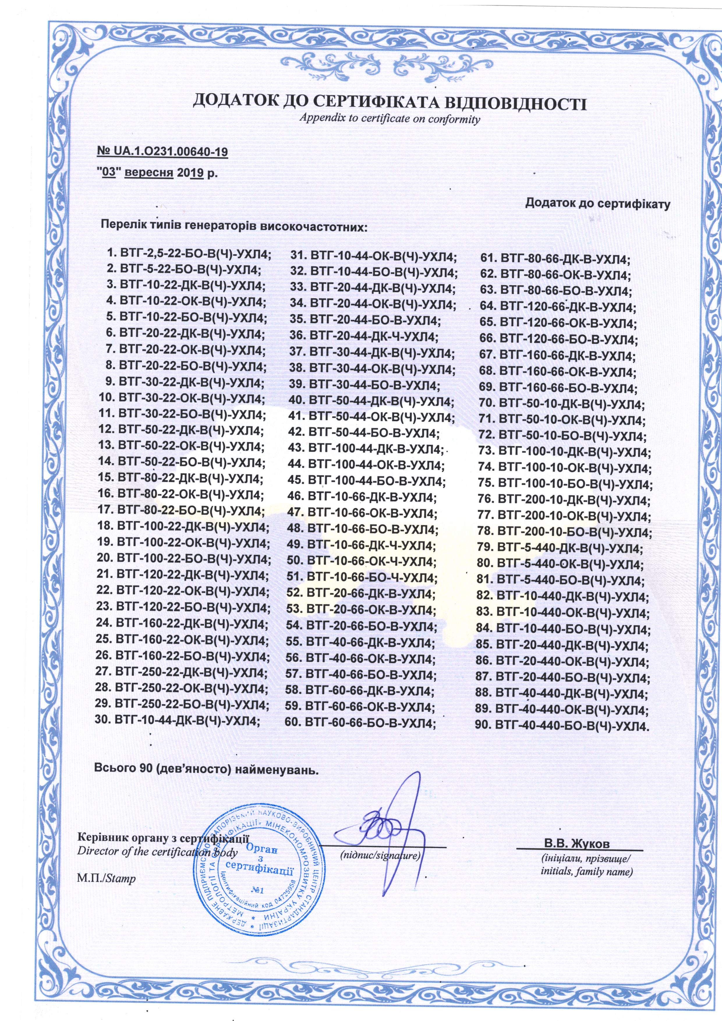 · высокочастотные транзисторные генераторы серии ВТГ мощностью от 2,5 кВт до 450 кВт и частотой 2,4-10кГц, 22кГц, 44кГц, 66кГц, 220кГц, 440кГц