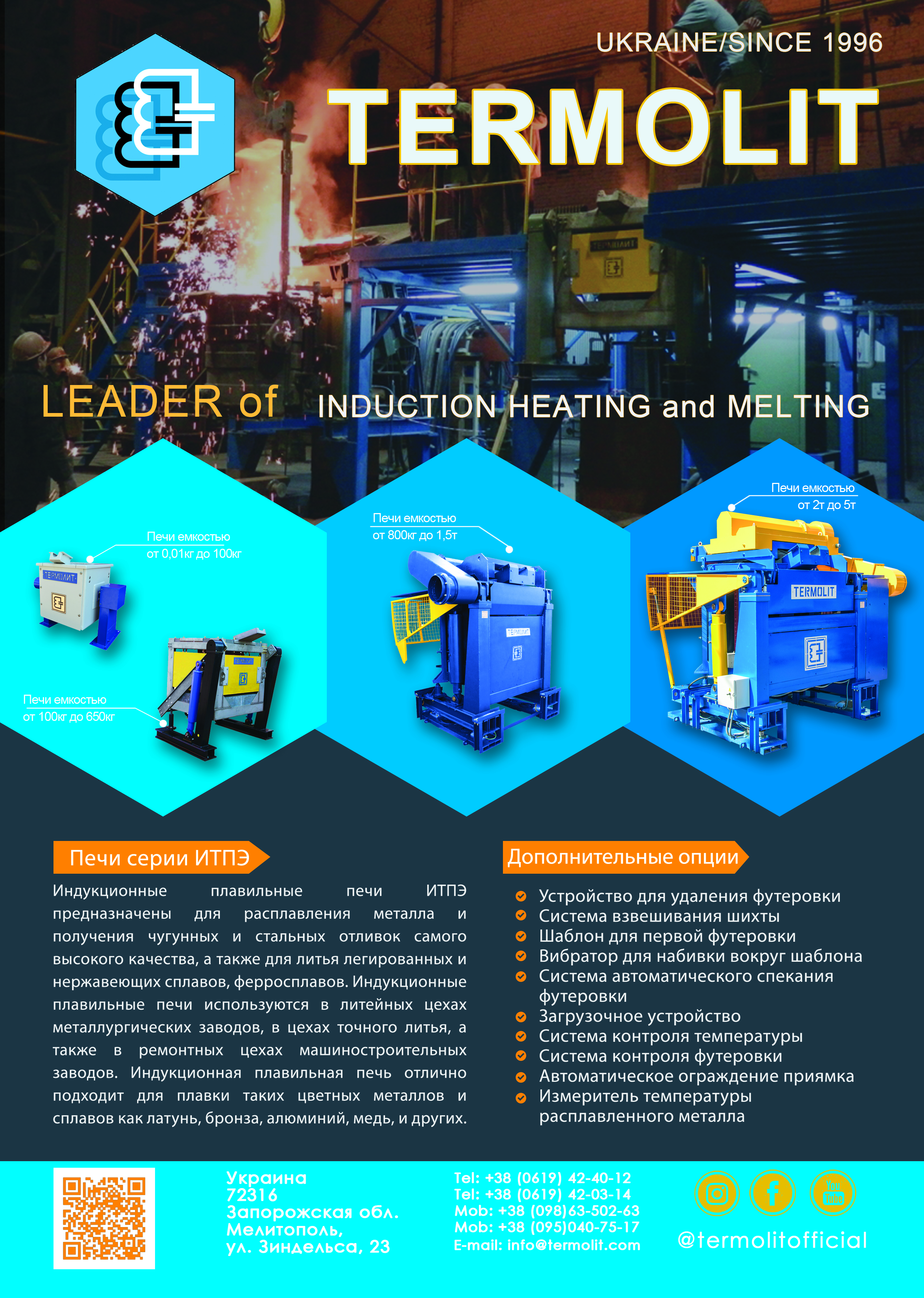 ООО «Термолит» производит индукционное оборудование для нагрева, закалки и плавки металла. На рынке с 1996 года. Официальные представительства во многих странах.
