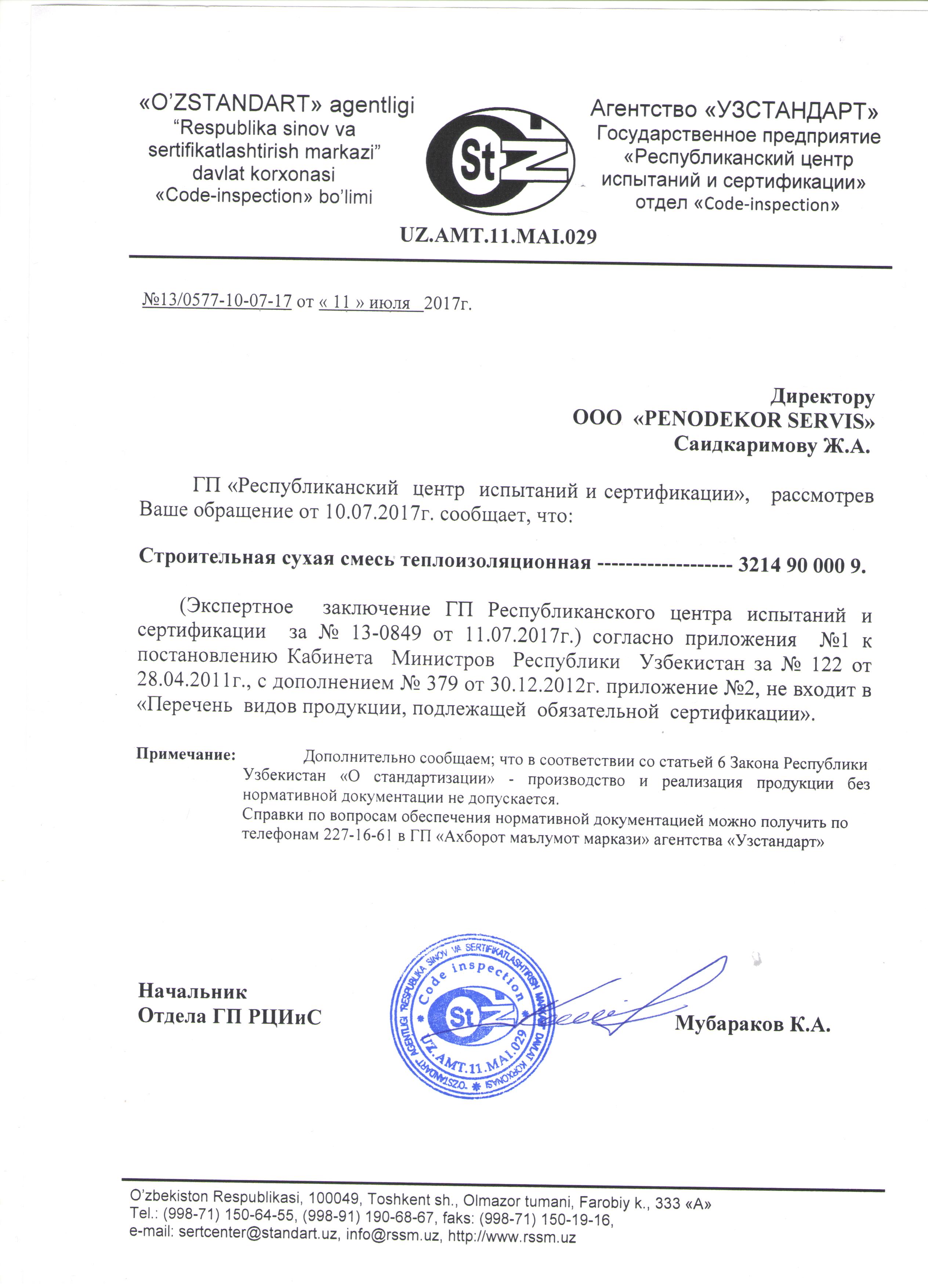 | Строительные материалы, Строительные смеси | Узбекистан, Tashkent, Ташкент, Мирабадский р-н, Сайхун 170А/31 |