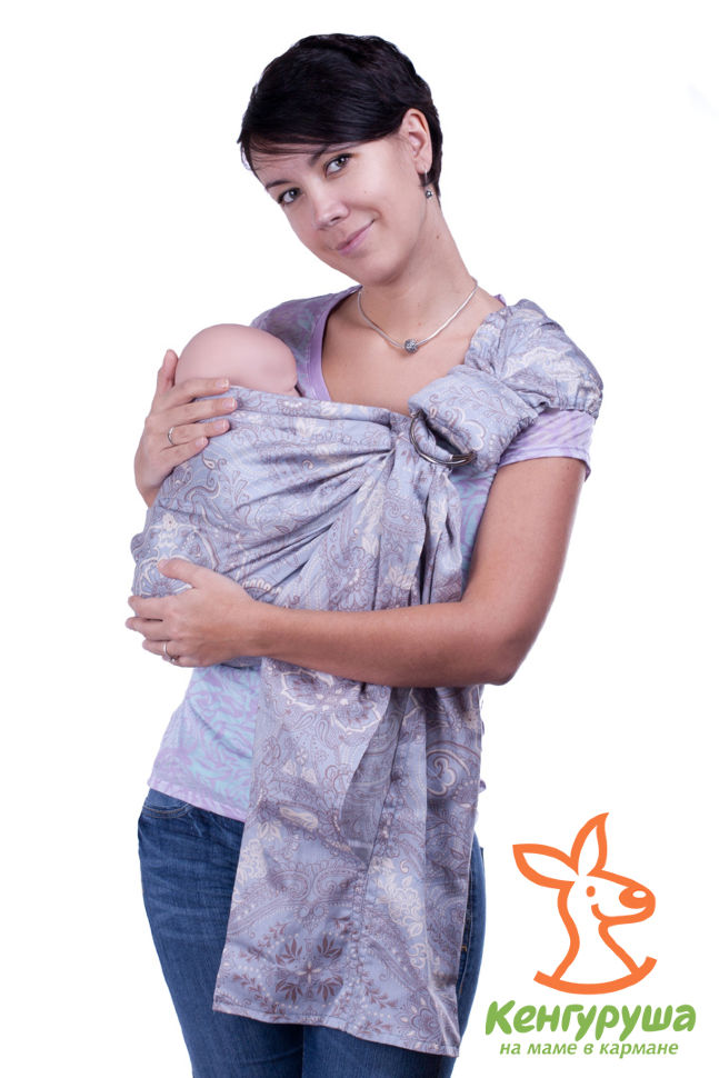 Слинг с кольцами ТМ «Кенгуруша» Усовершенственная модель классического слинга с кольцами. Более 7 положений ребенка: с рождения и до 2-3 лет.Производитель: КенгурушаАртикул: TDM-102-013Слинг представляет собой приспособление, изготовленное из натуральной ткани, предназначенное для ношения малыша на себе. Слинги были придуманы еще много столетий назад и в настоящее время являются востребованными и популярными. Многие мамочки предпочитают носить своих детей в таких слингах, это удобно, комфортно и ребенок всегда рядом.Слинги бывают разных моделей, дизайнов, расцветок, с рисунками и без. Популярностью пользуются слинги торговой марки «Кенгуруша» с кольцами, модель Home-Style с кольцами.Слинг представляет собой полосу, длина которой составляет 2 метра, один конец остается свободным, в другой вставлены два прочных кольца. Хвост заправлен в кольца, с его помощью можно регулировать слинг, вытягивать бортики (края). Это новая, более усовершенствованная модель классического слинга. Имеет современный дизайн и 7 положений, может использоваться для детей с рождения и до 3-х лет. Основные положения - вертикальное, горизонтальное и на бедре.У слинга есть декоративный клапан, который закрывает кольца, он придает модели спортивный стиль, функциональность остается такой же, как у моделей с открытыми кольцами. Имеет мягкие и тонкие бортики из синтепона, их можно протащить в кольца и отрегулировать размер слинга.Функциональные характеристикиМодель Кенгуруша Home-style изготовлена из натуральной ткани - 100%-го хлопка, она не вызывает аллергии на теле малыша, тонкая, мягкая и нежная на ощупь, пропускает воздух, кожа малыша не преет, свободно дышит. Ребенок будет чувствовать себя комфортно и уютно в таком слинге даже без одежды. Ткань стирается легко, сохнет быстро, прочная, не линяет, не дает усадки при многократных стирках, долговечна, тянется по диагонали, обеспечивая превосходную поддержку малышу.Лямка для плеча эластичная, легко фиксируется на плече. Мягкие синтепоновые бортики обеспечивают ребеночку мягкость под головкой и ножками. Кольца из металла закрыты мягкой подушкой. Лямку слинга можно носить на любом плече, регулируется быстро и просто.Есть зашитый хвост с объемными вместительными карманами, в них можно держать бутылочку, платочек, соску и другие предметы первой необходимости.Модель представлена в разных размерах, слинг надо подбирать под размер своей верхней одежды, например, если размер одежды 48, то слинг надо брать с размером М (42-48).Рисунок модели оформлен восточными узорами, что делает эту модель привлекательной, стильной, она будет дополнять верхнюю одежду в качестве красивого и стильного аксессуара.Преимущества слинга:Малыша можно носить с рождения;Разные варианты использования (положение лежа, сидя, на боку, сзади);Простота и легкость регулировки слинга вместе с малышом на руках;Легко надевается и снимается;Достать ребенка или посадить его в слинг не составляет особого труда, а также поменять ему положение в нем;Малыш легко перекладывается в кроватку, если заснул в слинге;Удобство кормления малыша.С таким слингом можно ходить куда угодно, мамочка всегда будет модной, стильной и красивой, как в гостях, так и дома в кругу семьи.