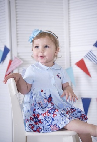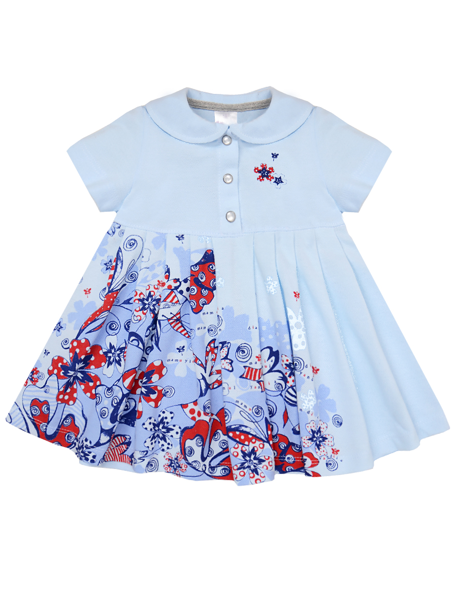 Платье для девочки с воротником-стойкой и застёжкой на кнопках. Декорировано гипоаллергенным принтом на водной основе. Хлопок 100%