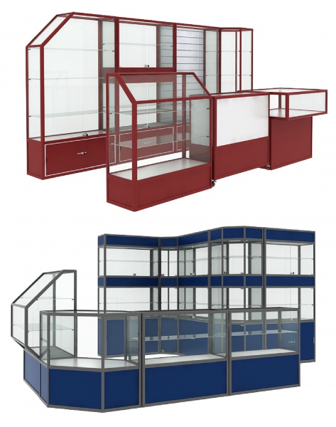 Распространенный вид торгового оборудования, позволяющий удовлетворять огромному количеству критериев, необходимых при оснащении магазина. Профильные торговые витрины и прилавки, в зависимости от моделей, имеют различную модификацию, они могут быть: 4-, 5-, 6- и 8 гранными. Помимо классических витрин и прилавков, мы можем предложить торговые столы для кассовой зоны. Разнообразная цветовая гамма и разновидность материала, предаст индивидуальность Вашему Магазину. Торговые витрины и прилавки, выполненные из стекла и алюминиевого профиля, позволяют оборудовать магазин максимально эффективно, используя всю территорию торгового зала.