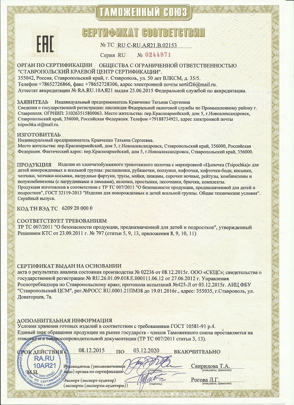 Продукция экологически чистая и сертифицированная. Одежда, которую мы предлагаем, будет радовать Вас и вашего ребенка!
