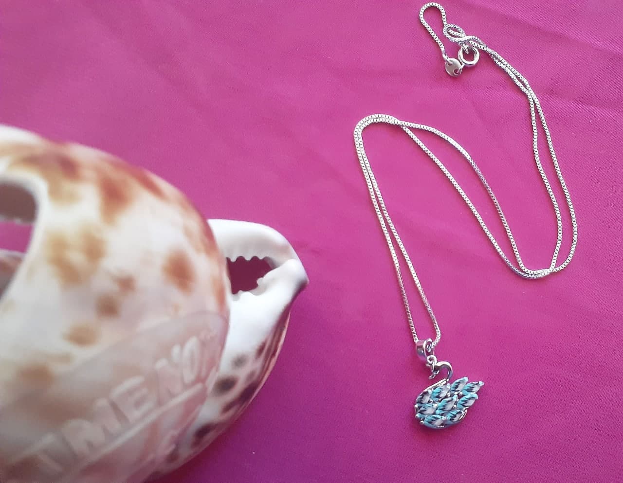Цепочка и кулон сделана из меди, серебристое напыление, ручная роспись. Длина цепочки 22см, кулон -1,5см.
