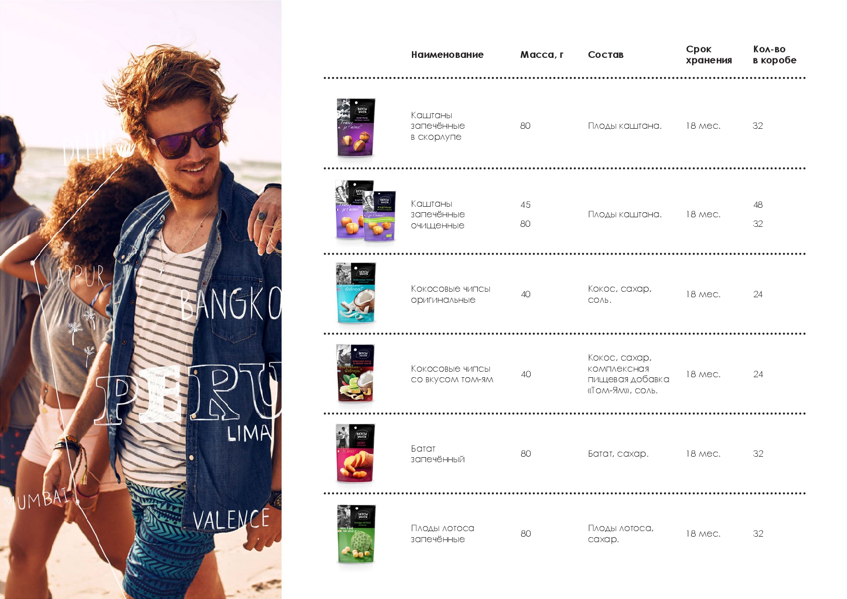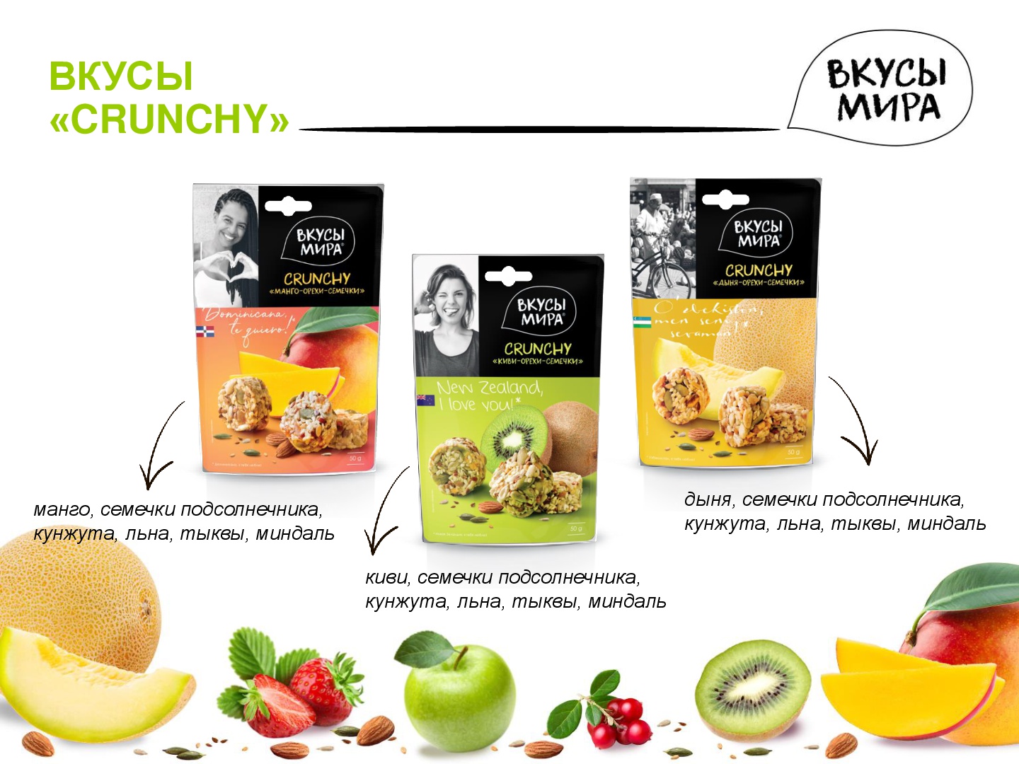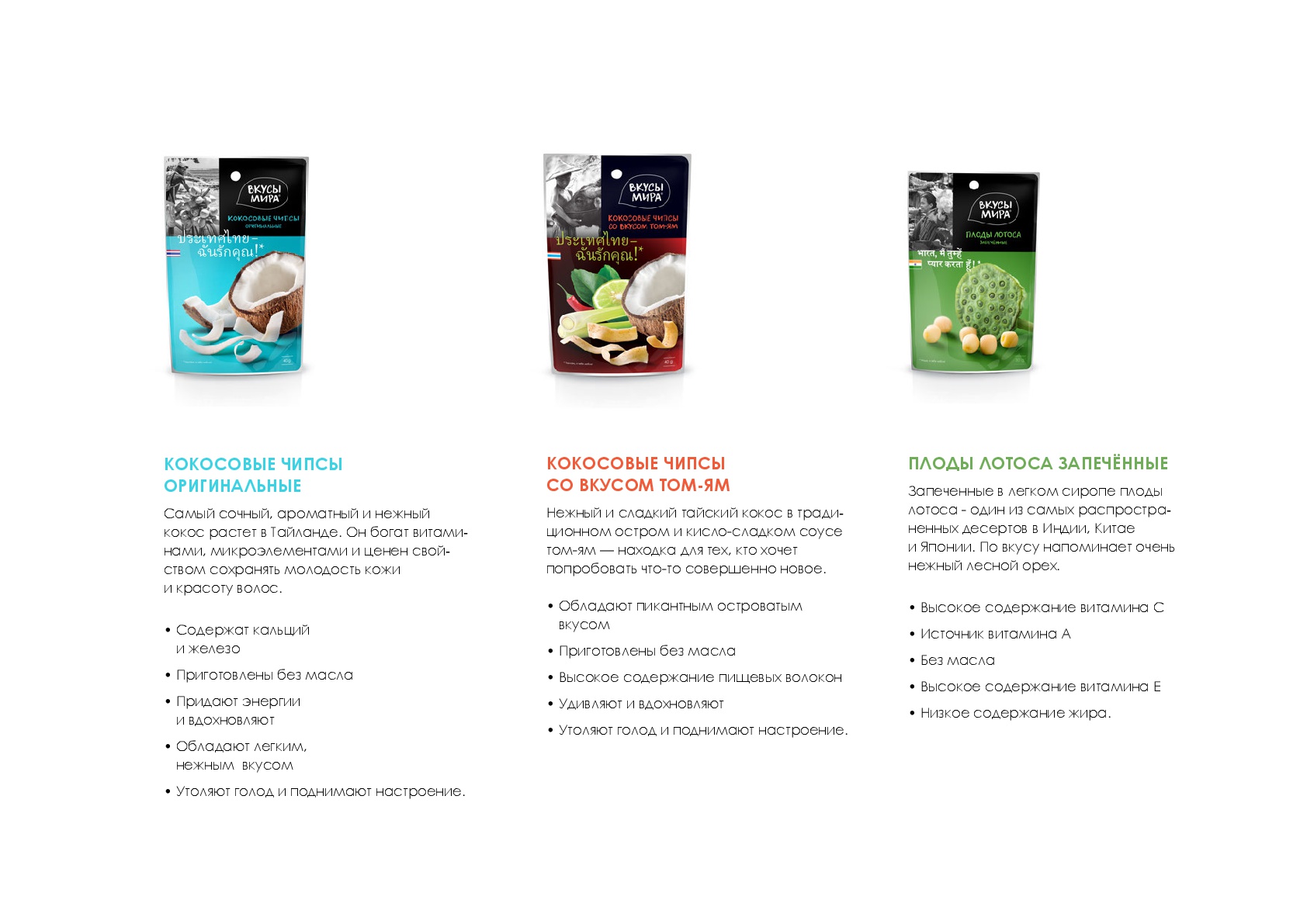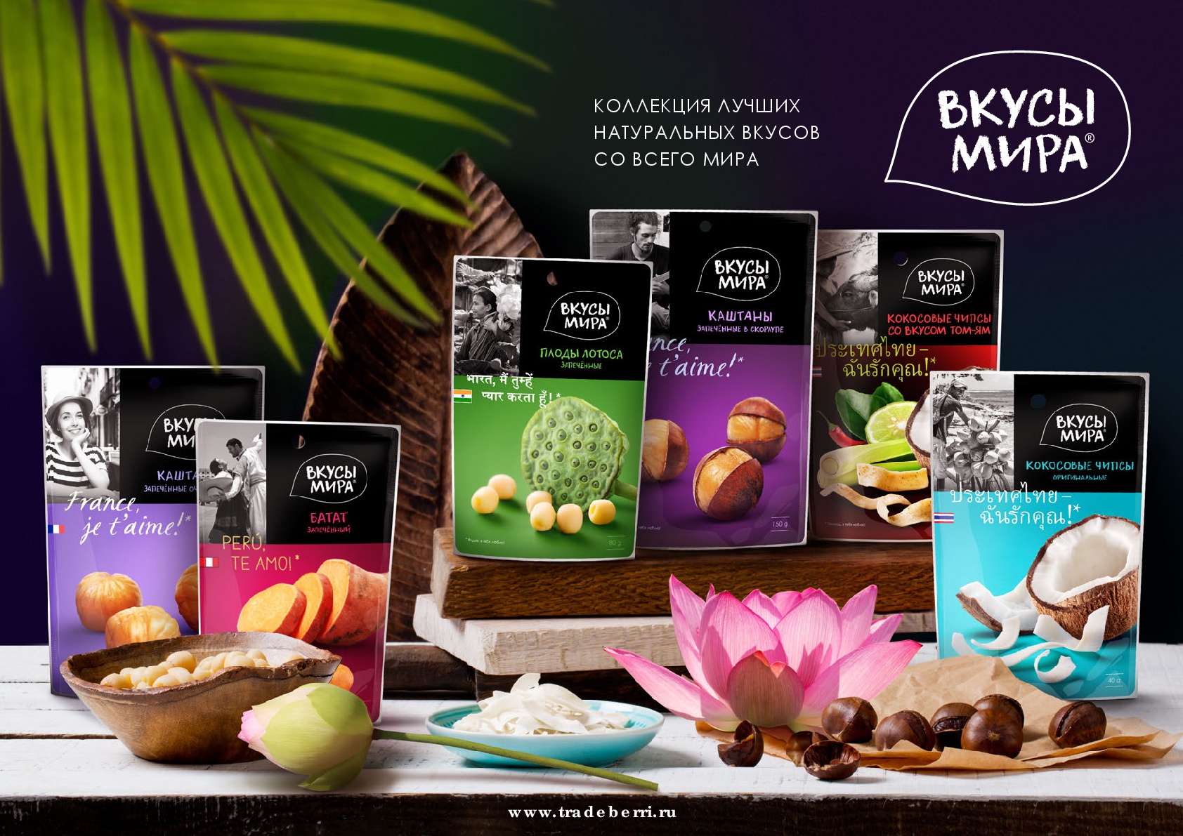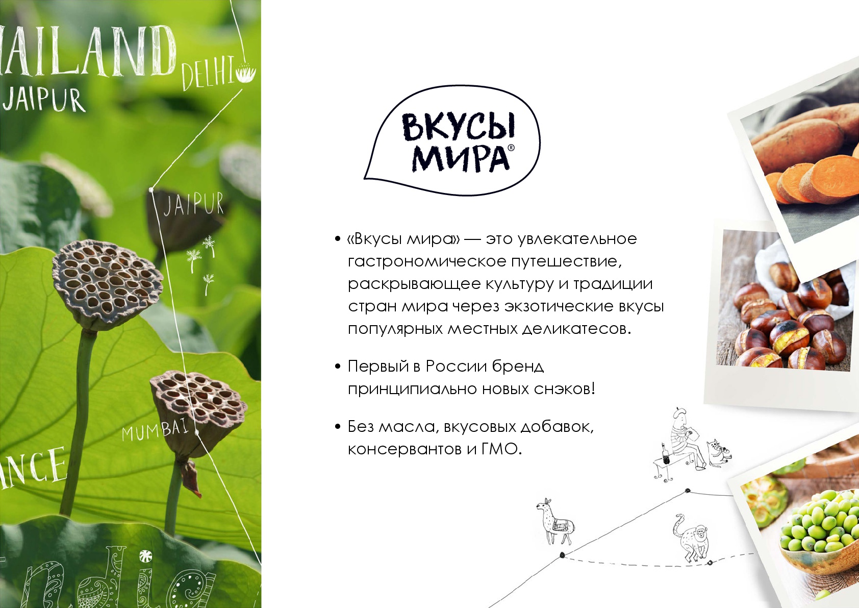 Вкусы мира — первый российский бренд в сегменте экзотических, полезных для здоровья снэков, объединенных идеей путешествия по странам мира через знакомство со вкусами этих стран.