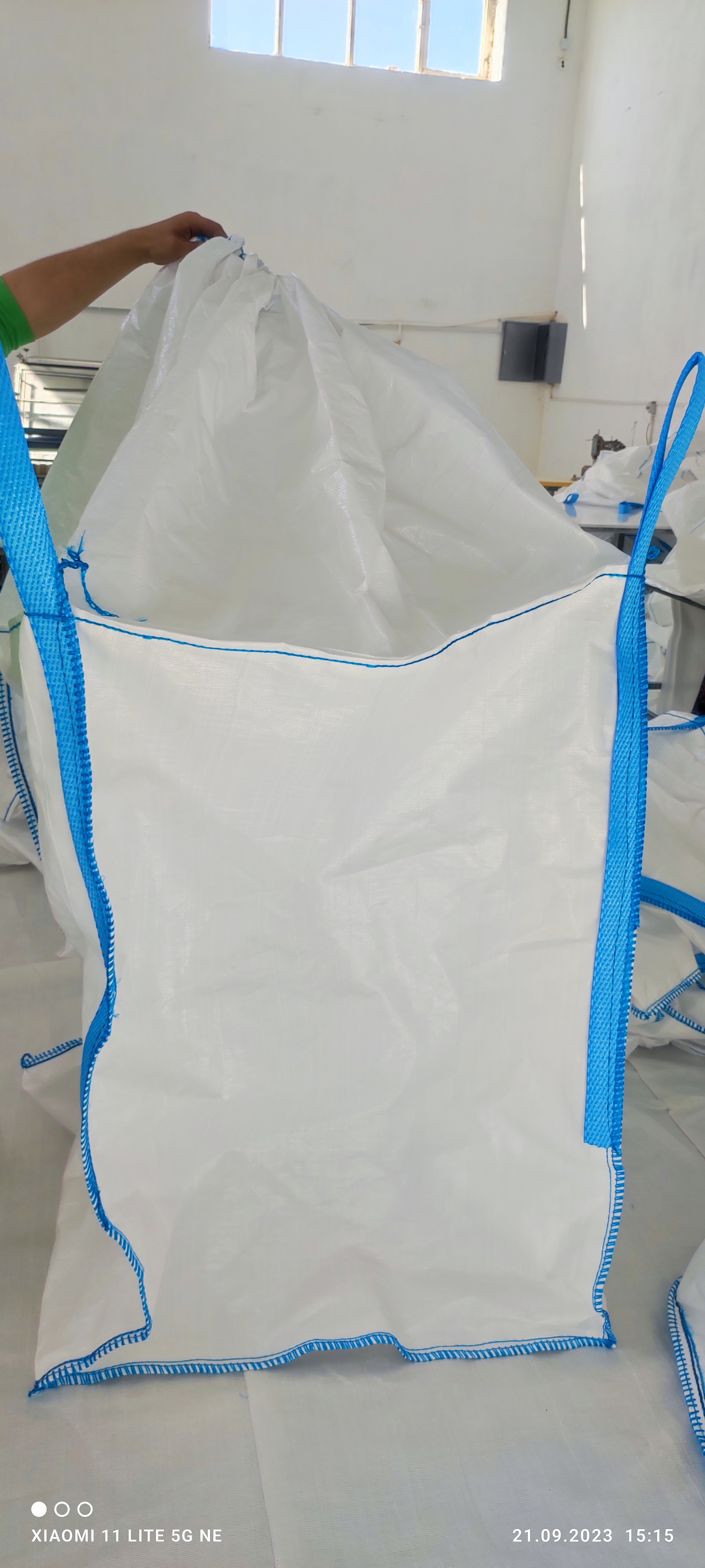 Мешок тканый, полипропеленовый, белый типа Биг Бэг (МКР) 95*95*100 см,( по заказу можем готовить) плотность: от 110 гр/мкв до220 гр/м2, верх открытый, клапан, любка, крышка ,низ глухой, люк. Грузоподъёмность:от1000 тонны Коэффициент безопасности:5:1 Процент в ткани УФ стабилизатора: от 1,5% Цвет ткани: белый Стропы: 4 или 2 ленточные, высота 30 см, ширина от 40 мм до 80 мм. Карман для документов: прозрачный . Упаковка:в пачках по 25 штук Код ТНВЭД :6305321900