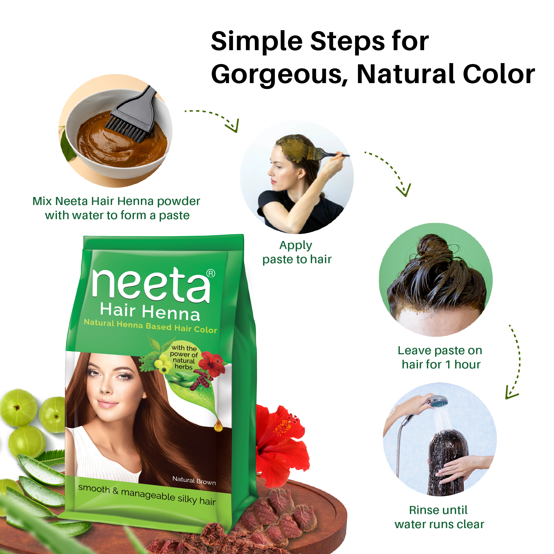 Henna Powder for Hair, 125g, Natural Hair Color with Amla, Shikakai, Heena, Aloe Vera & Hibiscus for Smooth, Silky Shine - 107827