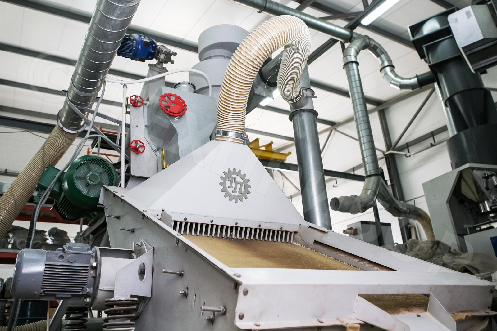 Цена указана с учетом НДСАвтоматизированная компакт-линия сушки-измельчения «МИКРОКСИЛЕМА-ДМ» ТУ 3618-002-92992044-2012 предназначена для производства порошков, например, древесной муки ГОСТ 16361-87, из влажного растительного сырья в автоматическом режиме.Автоматизированная компакт-линия «МИКРОКСИЛЕМА-ДМ» позволяет высушивать растительное сырье одновременно с его измельчением, без использования внешних источников тепла. Работа агрегата основана на многофакторном энергетическом воздействии - пульсации давления в локальных объемах камеры помола, обеспечивающих высокие показатели сдвиговых усилий, при относительном движении сред и фаз. Съем влаги с поверхности частиц растительного сырья происходит в результате ее механического удаления (стряхивания, центрифугирования, отжима) в сочетании с температурным разделением материаловоздушного потока, аналогично эффекту Ранка (по типу вихревой трубки Ранка). Технические характеристики:ПараметрыЗначенияГабаритные размеры (L×B×H), мм5370×2170×3160Масса, кг1600Крупность питания не более, мм20Влажность сырья не более, %30Влажность, продукта помола, %< 5*Объем расходного бункера, м30.3Производительность, м3/ч0.05-2*Напряжение электросети, В380Установленная мощность, кВт38.8
