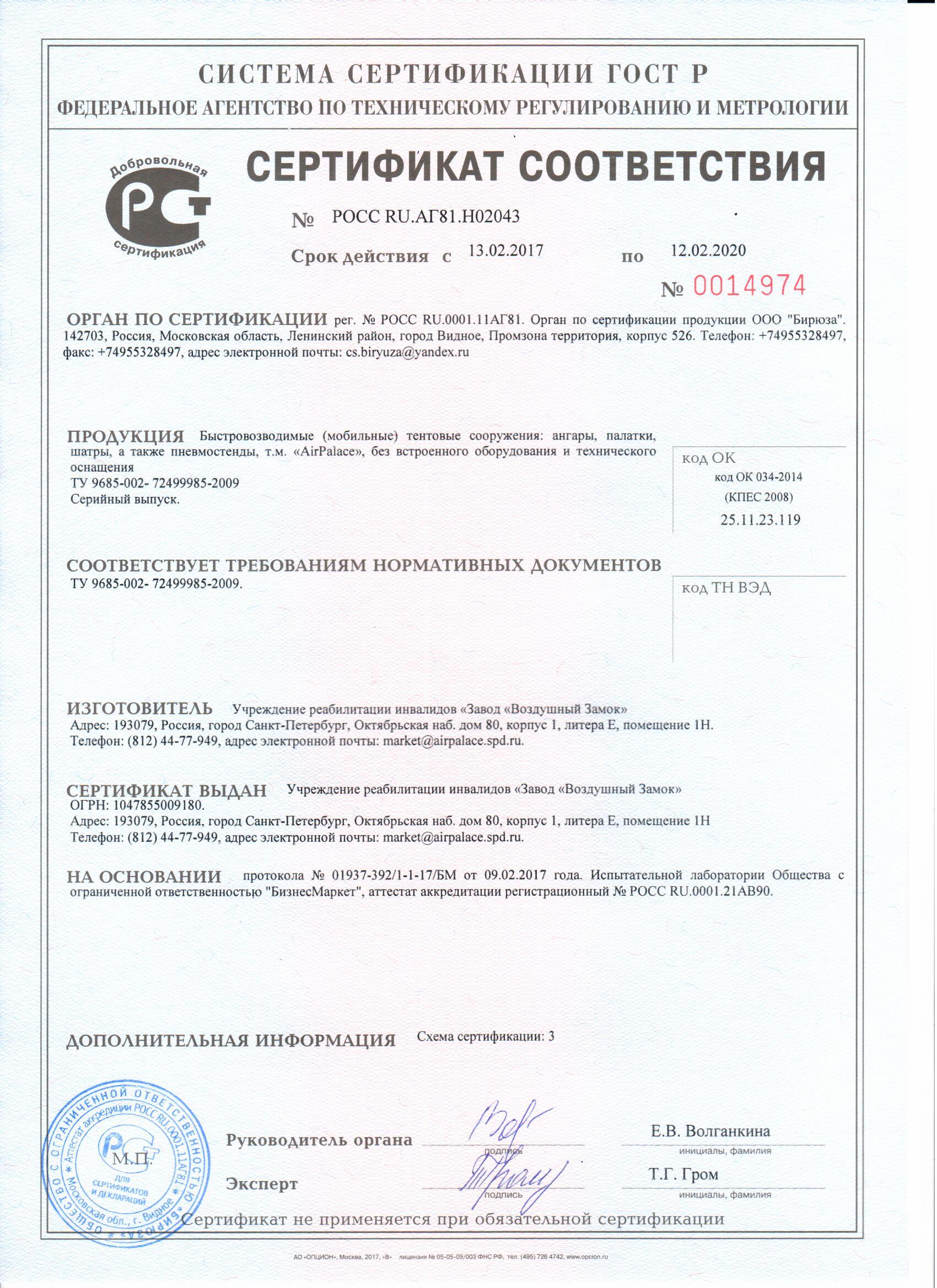 Информация о компании и выпускаемой продукции от «Завод «Воздушный Замок» Наша компания была открыта уже в довольно далеком 1999 году. За это время мы всегда показывали отличные показатели развития, никогда не сбивались с намеченного пути. Даже в тяжелые кризисные времена мы не вешали нос, практически не сбавляли своих оборотов. Хотите знать, в чем секрет? Он кроется в безукоризненности оказываемых услуг, отличной работоспособности коллектива, всегда умеренными финансовыми аппетитами. В нашей компании каждый желающий сможет заказать лучшую продукцию, изготовленную из каче-ственных материалов, при этом не переплатить. Стать клиентом компании «Воздушный замок» - это очень выгодно и удобно! Любой ваш каприз легко воплотится. Да так, что даже лучше, чем мечтали! «Завод Воздушный замок» производит для Министерства обороны РФ и МЧС России аварийно-спасательное оборудование: 1. Муляж танка надувной и любой техники, 2. Судоподъемный и грузоподъемный надувной понтон, 3. Трап-плот для самолетов, 4. Плот надувной для спасения на воде, 5. Боновое аварийное надувное заграждение от розливов, 6. Ангар надувной пневмомодульный, 7. Пневмотическое прыжково-спасательное устройство ППСУ 20 - куб жизни, 8. Палатка для МЧС и полевой госпиталь. 9. Палатка медицинская надувная для обеззараживания, 10. Носилки для пострадавших, раненых и больных людей, 11. Временное сооружение при строительстве и ремонте дорог. Пневмомодульные сооружения ― давние разработки мировой инженерии и успешно используются по всему свету вот уже несколько десятилетий. Эти сооружения представляют собой герметичные (кле-енные или сваренные) баллоны арочного типа из армированного ПВХ, объединенные в единую кон-струкцию, которая может выдержать скорость ветра до 40 м/с и снеговую нагрузку до 80 кг/м². Они могут использоваться для коммерческих и государственных нужд. "Завод Воздушный замок" представляет вам широкую линейку пневмомодульных и пневмокаркасных сооружений разного размера и назначения. Пневмосооружения ― это быстровозводимые, удобные в использовании, очень экономичные кон-струкции, позволяющие использовать эти комфортабельные помещения в самых разных назначениях: как временное, но достаточно длительное жилье, полевой госпиталь, командный пункт, спортивный корт, конный манеж, склад любой направленности. Пневмосооружения незаменимы при аварийно-спасательных работах в случаях катастроф, аварий, стихийных бедствий. Пневмомодульные и пневмокаркасные сооружения по сути использования не отличаются от надувных конструкций. Однако есть часть существенных различий по сложности постройки. Рассмотрим их ни-же. Пневмомодульные и пневмокаркасные сооружения отличает: 1. Низкая стоимость и простота эксплуатации. 2. Короткие сроки изготовления. 3. Небольшие размеры в упакованном состоянии. 4. Быстрое возведение ― 3-4 дня. 5. Минимальные расходы на подготовку основания. 6. Не нужна разрешительная документация. 7. Возможность возведения над уже стоящим оборудованием. 8. Низкие энергозатраты при эксплуатации, так как система подкачки включается 1 раз в 2–10 дней (в зависимости от погоды). 9. Вся укрываемая сооружением площадь остается полезной, так как отсутствуют промежуточные ко-лонны и опоры. 10. Разнообразие архитектурных форм и размеров, что позволяет расширить конструкцию или, наобор