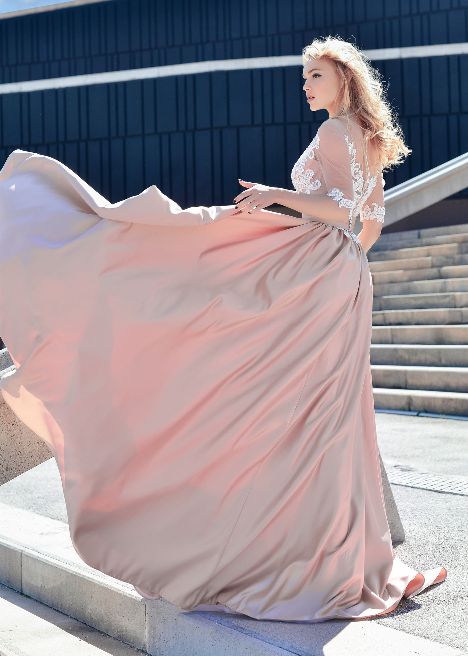 Ariel<br> Saten etekli gelinlik Anna RosyBrown